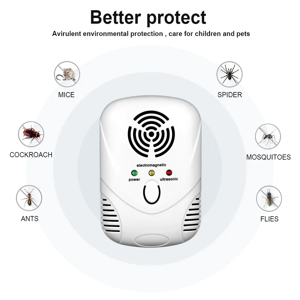 Особенности: Используйте физический метод, нетоксичный, без вреда для людей или домашних животных, маленький размер не займет много места. Частота ультразвуковой волны и электромагнитной волны меняется периодически и постоянно, поэтому мыши и насекомые не будут адаптироваться к определенной фиксированной частоте. Мощный: Эффективный диапазон защиты составляет около 150 квадратных метров под открытым небом. С Ночной светильник, мягкий и теплый синий светодиодный светильник может защитить ваши глаза от внезапного раздражения сильный светильник в полночь. В основном применяется для отпугивания мышей, комаров и тараканов, также может использоваться для отпугивания и управления другими вредителями, такими как пауки, муравьи, жуки и т. д. Параметры: Параметры: Материал: АБС-пластик Напряжение: AC100-230V Частота: 50-60 Гц Средняя потребляемая мощность: ≤ 6 Вт Частота ультразвуковой волны: 1 полоса: 25-70 кГц; 2 диапазона: 10-70 кГц Диапазон частот электромагнитных волн: 0,8-8 Гц Эффективный диапазон: около 150 квадратных метров (в открытой среде) Рабочая температура: 0-40 °/32-104F Размер: 9 см x 6 см x 3 см (Д x Ш x В) Вес брутто: 85 г Тип штепсельной вилки: штепсельная вилка стандарта США/штепсельная вилка европейского стандарта (опционально)