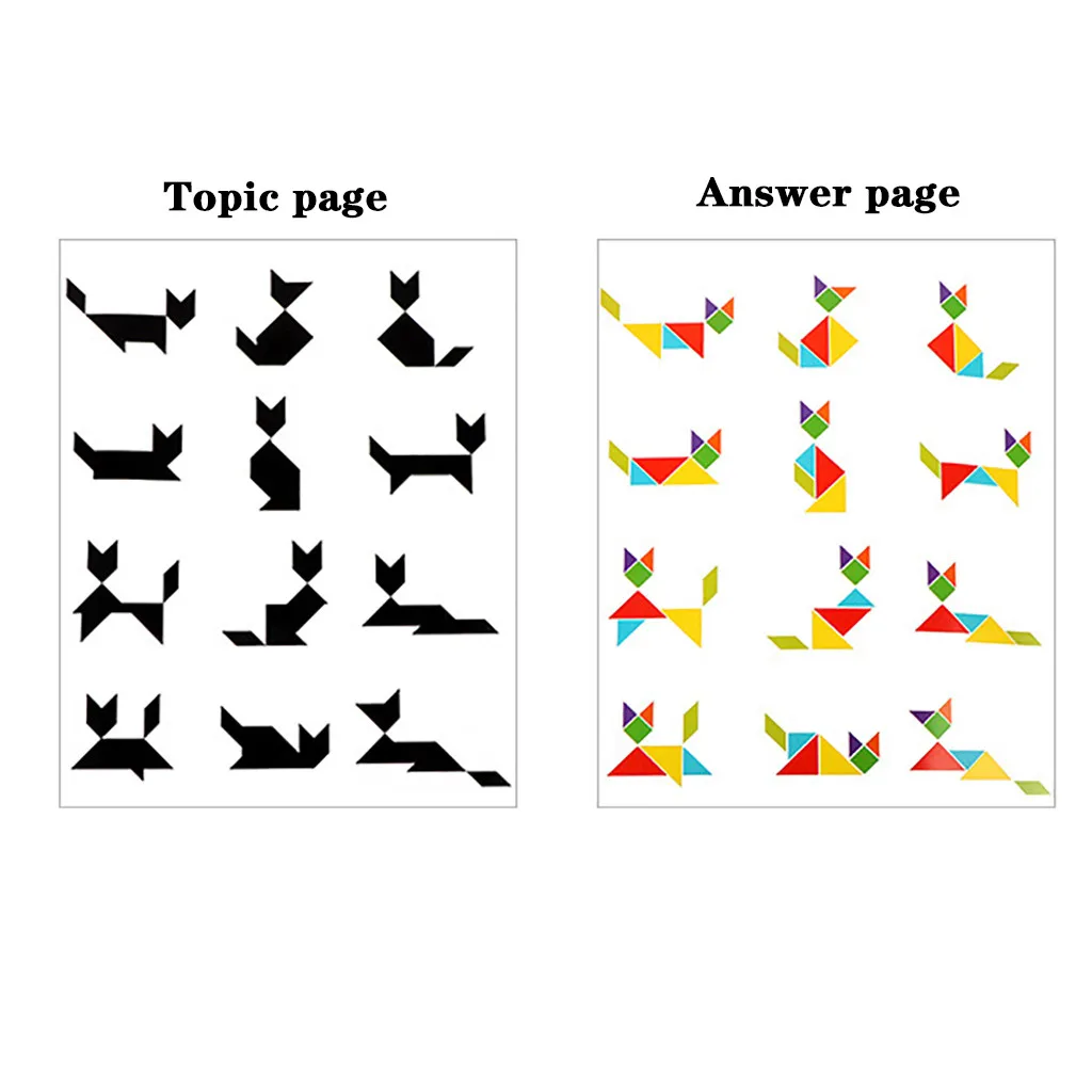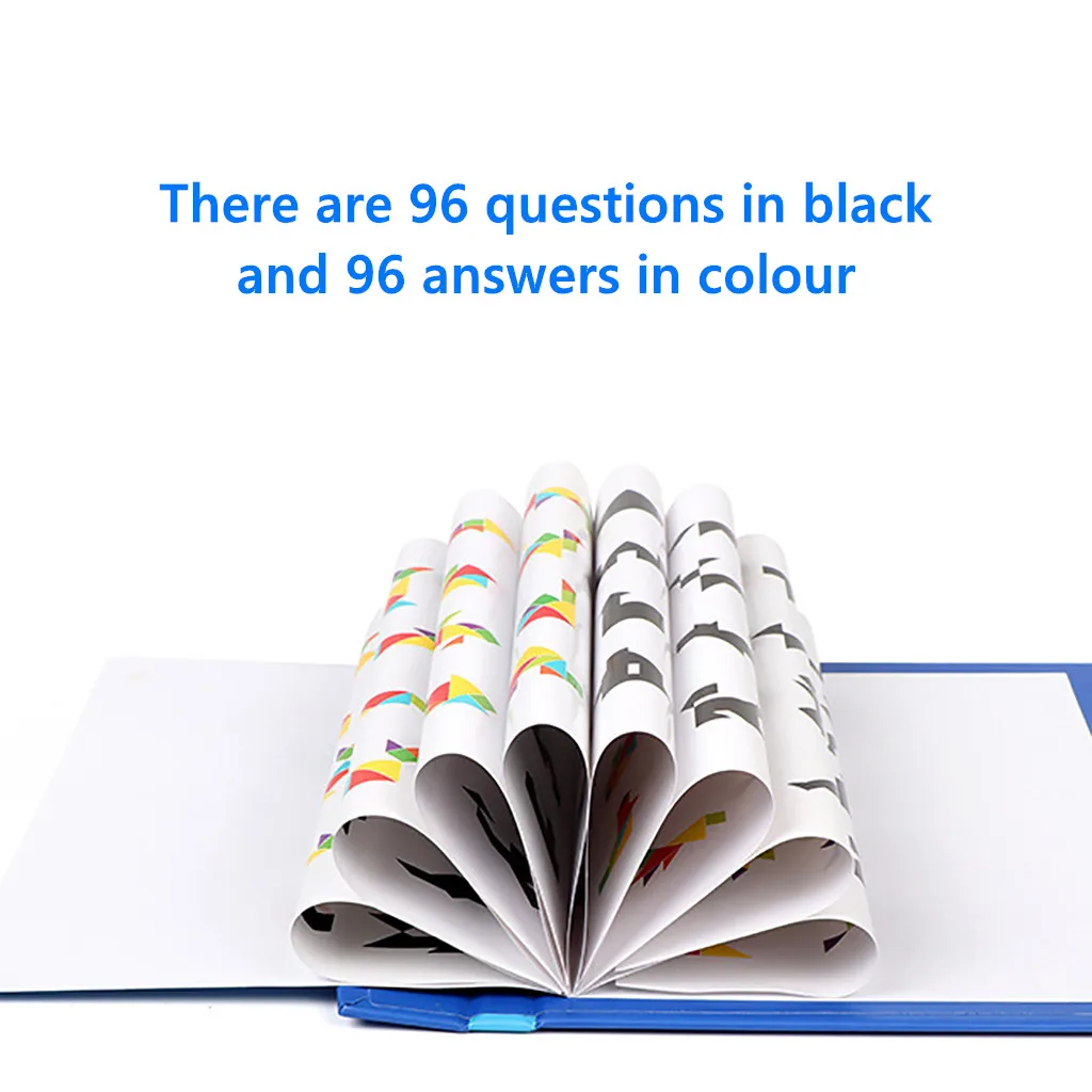 Отобранная древесина, каждая часть тщательно отполирована, поверхность гладкая и не требует заусенцев, а процесс снятия фаски окружен и не повреждает руку. Он окрашен экологически чистой краской на водной основе. Танграм с магнитом, не легко отвалиться. Дизайн книжного зажима, легко хранить и легко носить с собой. Есть 96 вопросов в черном и 96 ответов в цвете. Пусть дети изобразят узоры по их воображению и переверните их обратно, чтобы увидеть, правильно ли фотографии. Формы танграммы разнообразны, что может полностью стимулировать воображение детей, творчество, цветовое познание и концентрацию. Продукт подходит для детей старше 3 лет.