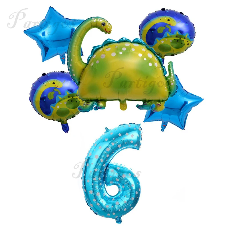 6 шт. = 1 шт. большой динозавр 2 шт. 18 дюймов звезда 2 шт. 18 дюймов круглый 1 шт 30 дюймов номер шар