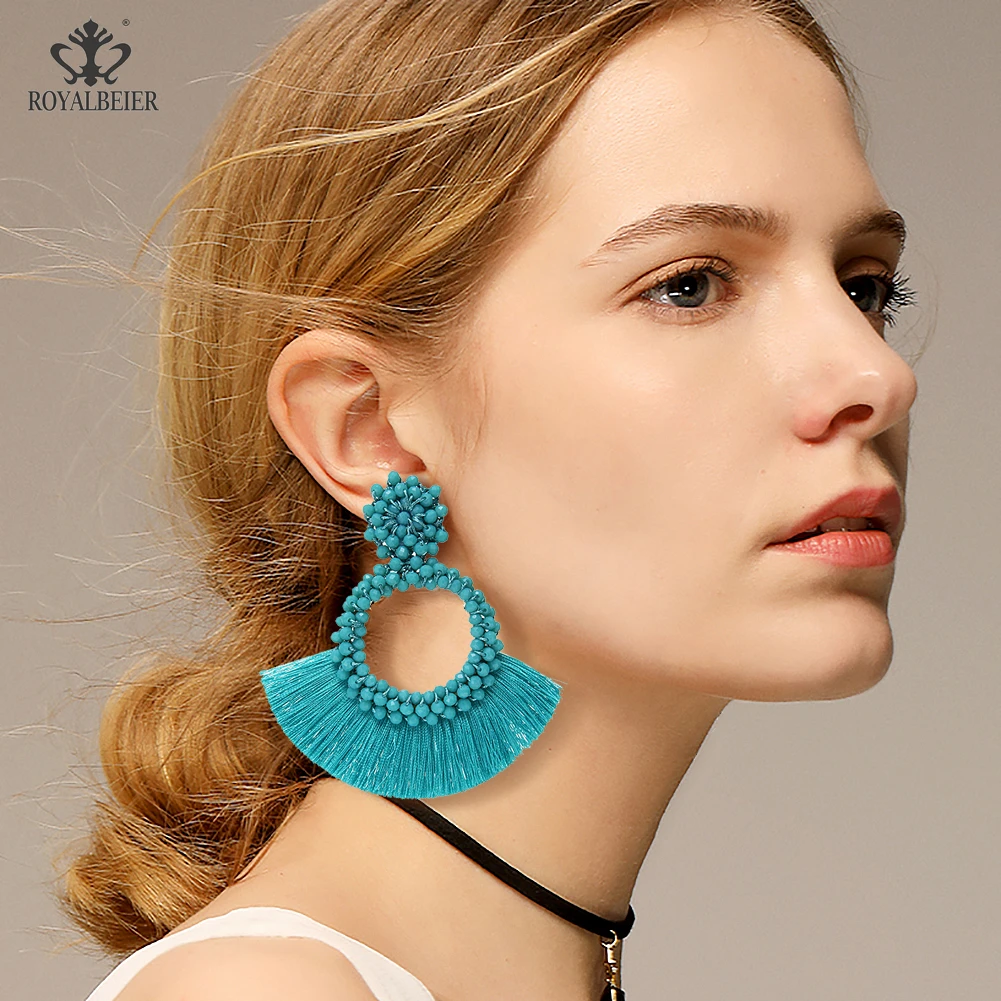 ROYALBEIER трендовые богемные серьги-капли с кисточками и бусинами для девушек и женщин, подарки на свадьбу, яркие массивные серьги