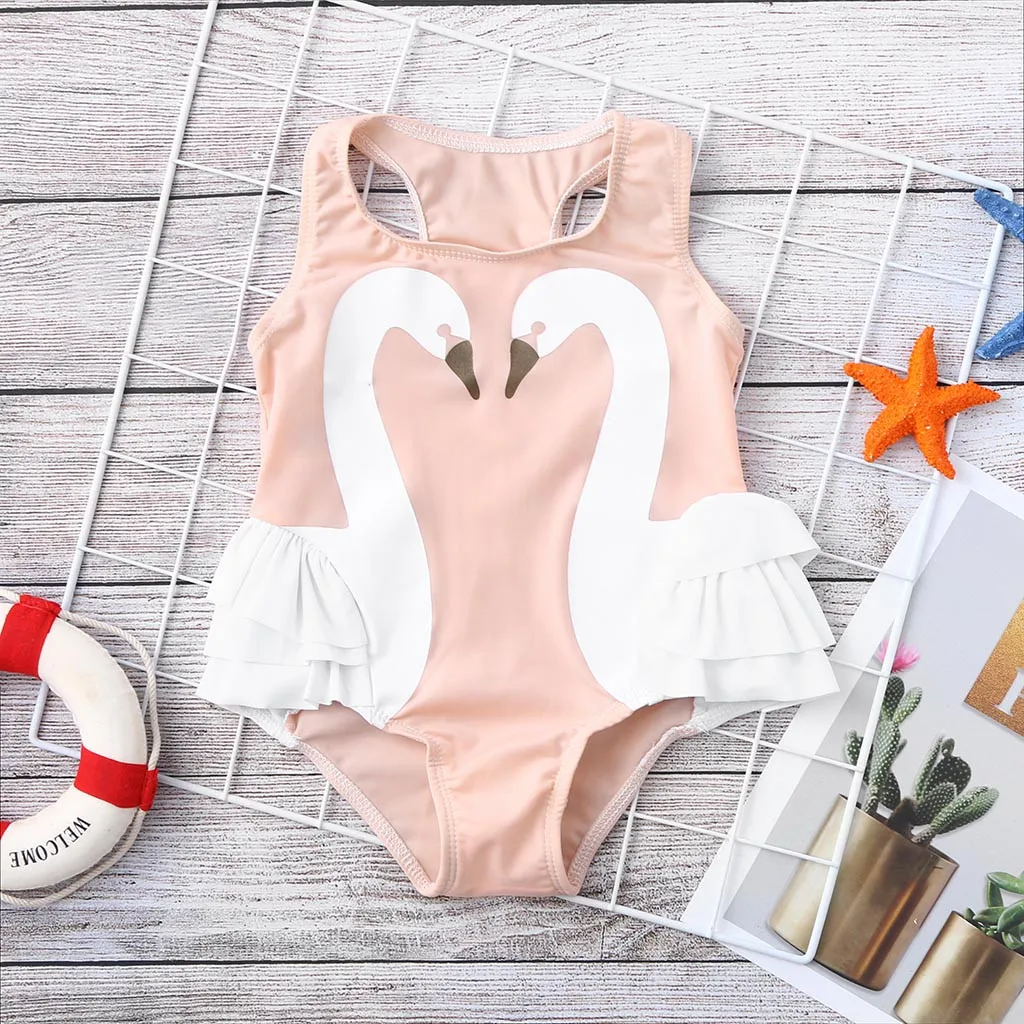 Лебединые купальники с оборками для маленьких девочек, купальный костюм, пляжный комбинезон