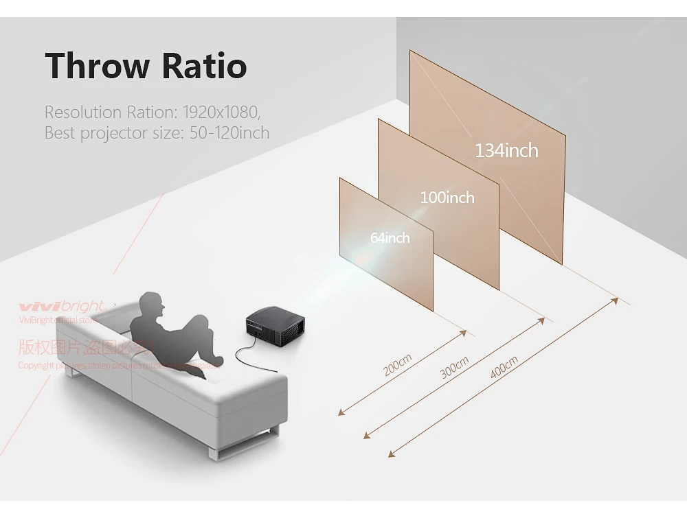 VIVIBRIGHT обеспечит вам достаточно большой экран независимо от того, находитесь ли вы в большой комнате или в небольшой комнате.