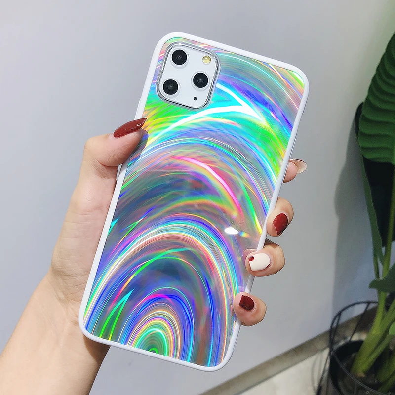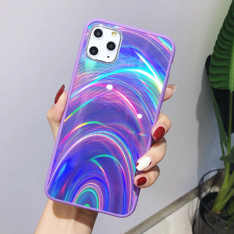 Голографический чехол Lovecom для iPhone 11 Pro Max XR X XS Max 7 8 6S Plus, мягкий акриловый чехол для телефона с изображением радуги Авроры
