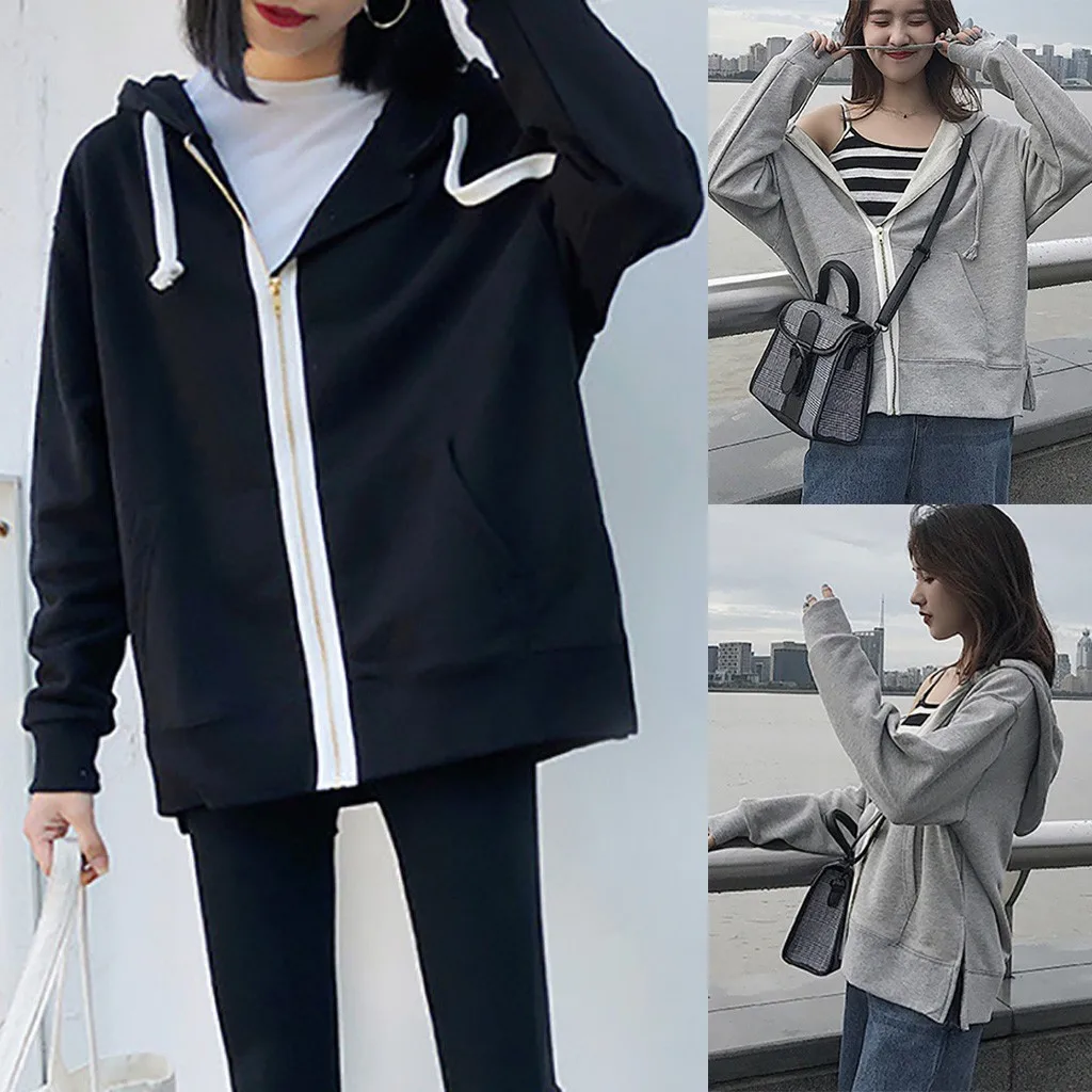 Женская свободная куртка с капюшоном, верхняя одежда, женский кардиган на молнии, Топ с длинным рукавом, свободное спортивное пальто, осенняя повседневная куртка, одежда