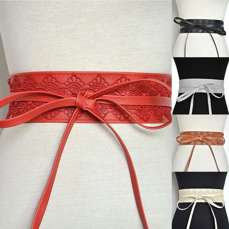 Женский кружевной декоративный пояс, модный универсальный широкий пояс из искусственной кожи на шнуровке