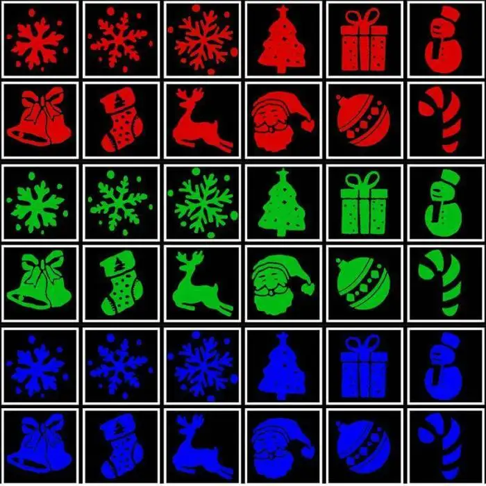1. 12 переключаемых узоров: нужно переключать объектив, Автоматическое вращение; красочные проекционные изображения о Рождестве.