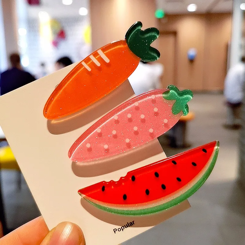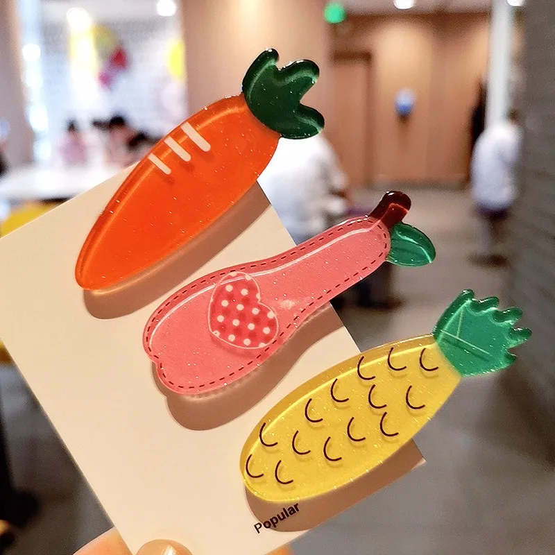 1 шт., Новое поступление, Детские аксессуары для волос, комплект головных уборов, клубника, ананас, заколки для волос с фруктами, Мультяшные заколки для волос с морковкой для девочек