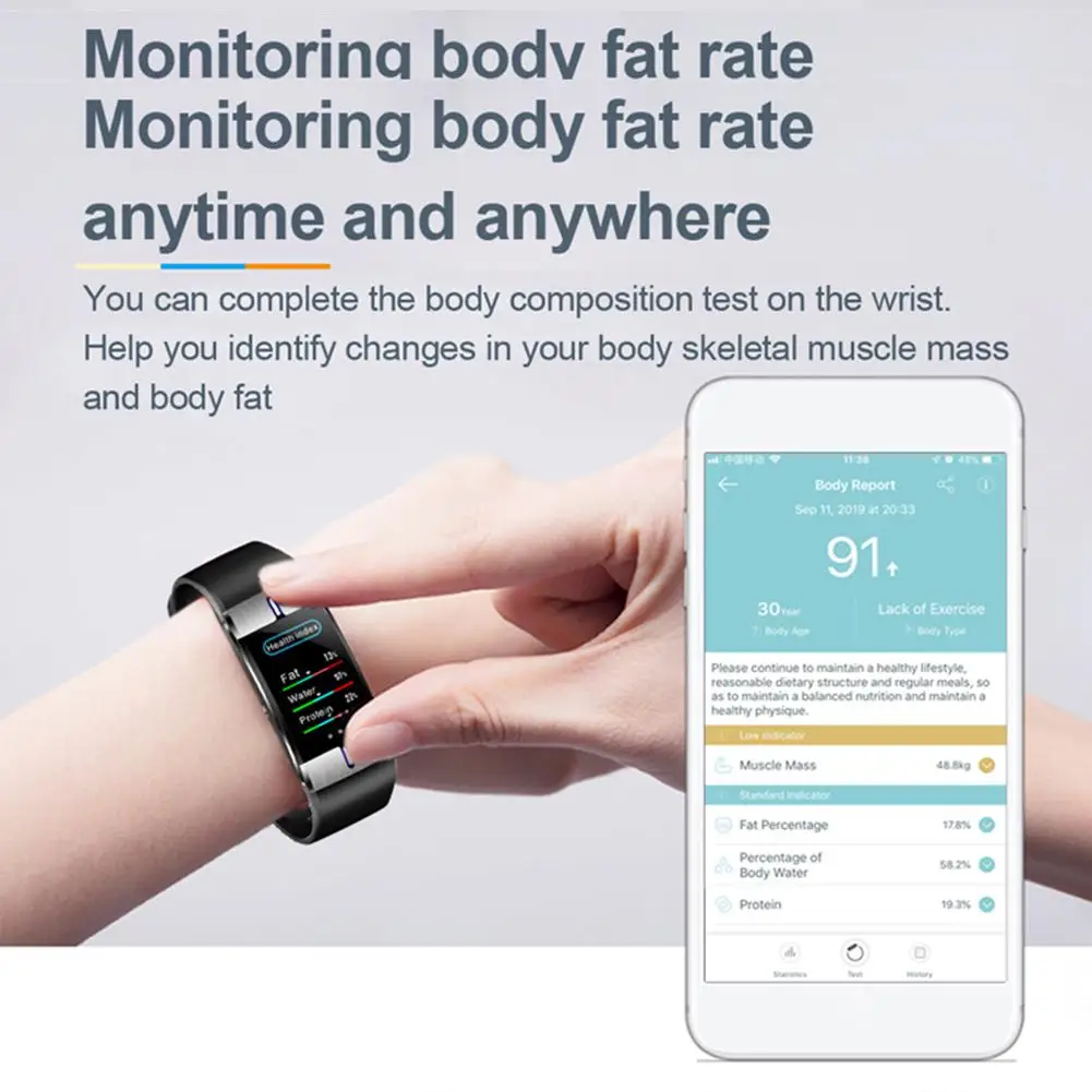 1、Monitoring Body Fat Rate Anytime Anywhere: You can complete the body composition test on the wrist. Help you identify changes in your body skeletal muscle mass and body fat.2. Определение тела Fatby Биоэлектрический метод импеданса: переменный ток обнаружения цикла контакта кожи с помощью четырех металлических медицинских ломтиков электрода спереди и сзади.3、PPG Super Low Power Consumption Accurate Heart Rate: Monitor and recod your heart rate 24 hours a day,pay real-time attention to your heart load,take care of your heart health.For real power consumption,a charge can last 6 to 10 days.4. Мониторинг сердечного ритма и артериального давления: Ношение браслета измеряет кровяное давление и частоту сердечных сокращений непосредственно и отображает данные на экране. Вы также можете просмотреть его через приложение, чтобы быть в курсе физических изменений.5、Low Power-consumption Long Duration: Upgrade the low power CPU+ low power health algorithm chipset, super-long standby: 30 days,normal use:6 to 10 days. IP68 dust-proof and waterproof: free wear feel guarantees normal use in exercise,swimming and room temperature shower.Параметры:Product Model: BM08Главный чип: NRF52832PPG chip: Low Power Continuous Heart Rate VC9SVirbation: громкоговоритель Mute/вибрацияWaterpfoof Level: IP68Размер экрана: 1,08 цветной экранScreen Type: TFTBLuetooth: 4,0 BLE (низкая мощность)Battery Type: Polymeter Lithium BatteryЕмкость аккумулятора: 105 мАчCharging Type:USBВремя зарядки: около 2 часовEndurance Time:Can use 5-10days、Standby Day: 20-30daysВремя сохранения данных: 3 месяцаManipulation Mode:Touch button operation and mobile phone APP controlСовместимая система: Android 4,4 и выше, для iOS 8,2 и вышеMaterial:Front Shell: PC, Face Shell Electrode: Powder Metallurgy, Back Shell: Plastic Injection Molded 316 Stainless Steel, Wristband: Environmental TPUЦвет: черный, синий, красный, розовый.Special Features:Body fat function, high definition color screen, continuous heart rate, blood pressure, multi-exercise modeДругие функции: Жир Тела, подсчет шагов, калории, дистанция, мониторинг сна, шаблоны упражнений, оповещения звонящего, оповещения о будильнике, дисплей ручной работы, общий доступ в социальных сетях (Wechat, Facebook, Twitter, и т. д.). Встряхните картинку, долго сидите, чтобы напоминать, ищите.Main Features:Функция контроля жира в теле, профессиональное тестирование данных о составе человеческого тела, подробный список из шести индикаторов.Mental health alert for female physiological cycle.Непрерывной 24-часовой мониторинг частоты сердечных сокращений с сверхнизкое энергопотреблениеEnvironmental TPU strap, hand-to-hand solitary and senseless wear.Разрешение высокой четкости 1,08 цветной экран, динамический и лаконичный интерфейс пользовательского интерфейса.Multi-sport modes (running, cycling, swimming, badminton).Мониторинг жира в теле, мониторинг сердечного ритма, мониторинг артериального давления, мониторинг сна.Global font content push, Wrist turn-over screen automatically, weather forecast, call rejection.Язык: Поддержка браслета язык содержания: около 200 национальных языков, для мирового толчка.1. APP Language: Russian, Indonesian, German, Italian, Czech, Japanese, French, Simplified Chinese, Traditional Chinese, English, Portuguese, Spanish, Arabic, Korean2. Язык браслета: китайский, английский, японский, немецкий, корейский, испанский, французский, итальянский, португальский, арабский, русский, голландский, хинди, чешский, польскийCharging: Если браслет не используется в течение длительного времени, пожалуйста, заряжайте его не реже одного раза в месяц. Его можно заряжать в течение 120 минут с момента каждой зарядки. Не перезаряжать, чтобы избежать повреждения аккумулятора.Warm Tip: 1. Этот продукт не предназначен для использования в качестве медицинского устройства.2. Please full charged at the first use. 3. Пожалуйста, используйте адаптер 5 в 1 А для зарядки, в противном случае это может повредить.4. Do not touch corrosive liquid with the equipment, in case of seriously damages. 5. Не ставьте оборудование в температуру ниже-45 градусов или выше 75 градусов.Packing List: 1 * Смарт-часы1*Chargi