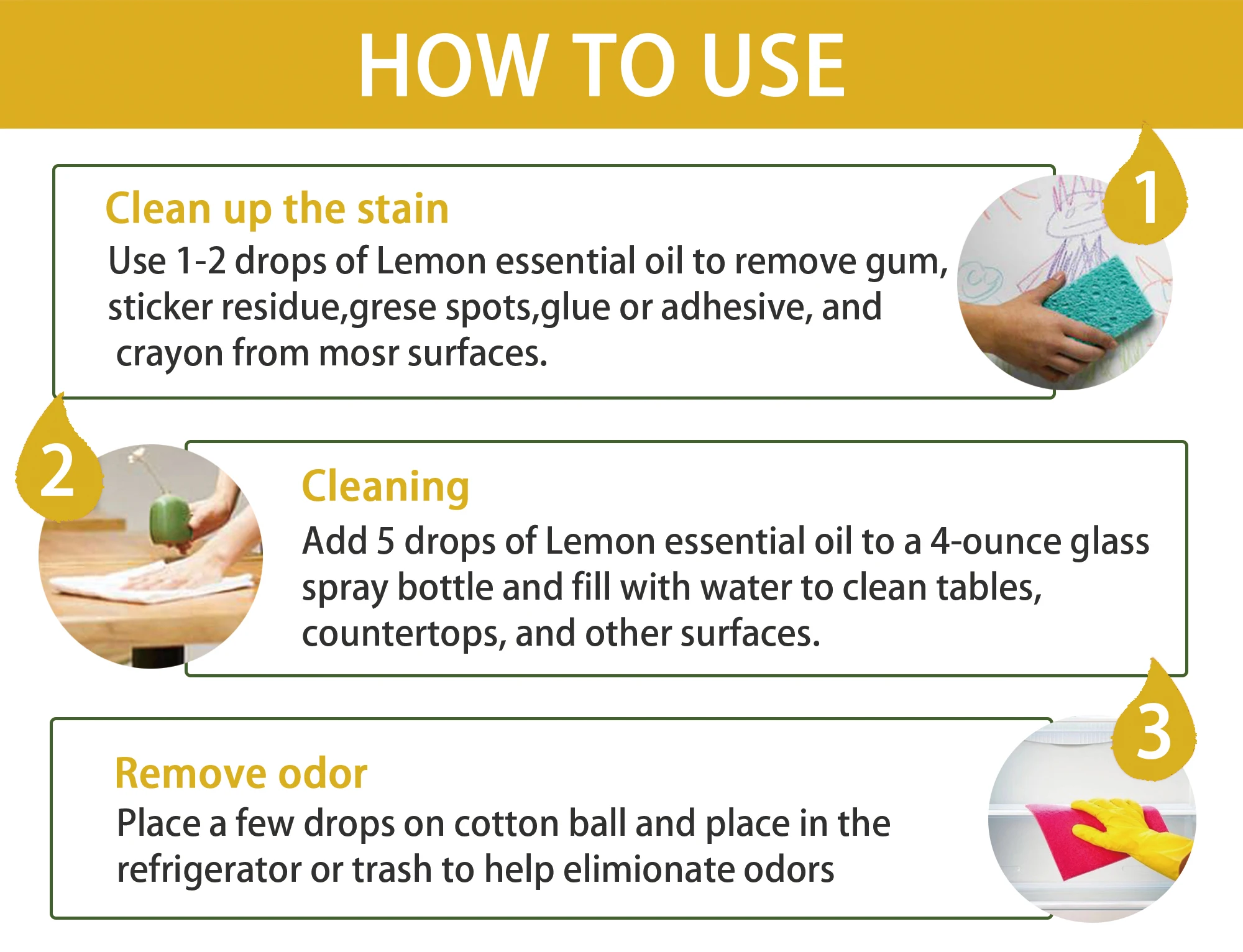 Мощный, свежий и очищающий аромат цитрусовых, который подпитывает и поднимает настроение Чудесные антисептические очищающие и охлаждающие свойства Используется в освежителе воздуха или диффузном лимонном масле для очистки неприятных ароматов Естественным дезинфицирующим эффектом Используется в стирке для удаления запаха. Очищает жирные руки Отлично подходит для дерева и серебра