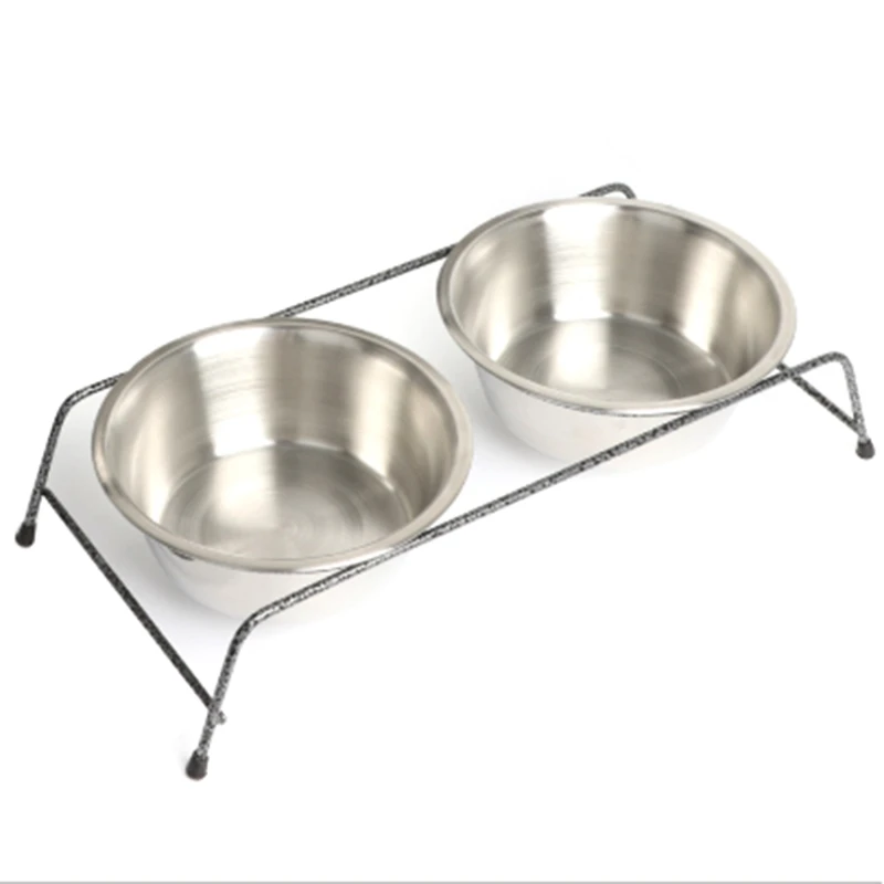 Двойная миска для собак, кошек, щенков, кормушка для воды, нержавеющая сталь, миска для домашних животных с чашами, подставка, питьевая тарелка, портативная водная тарелка для собак