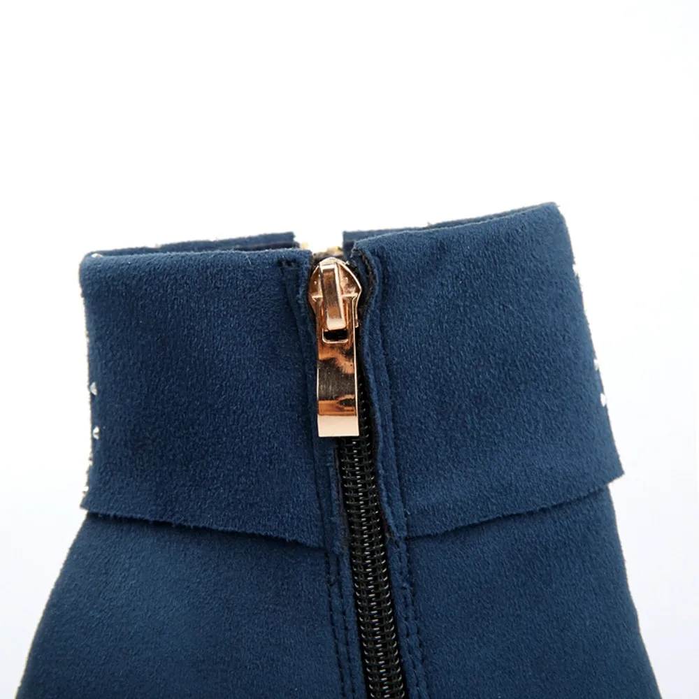 Женские Теплые ботильоны из флока на молнии с кристаллами и толстым квадратным каблуком; обувь с круглым носком