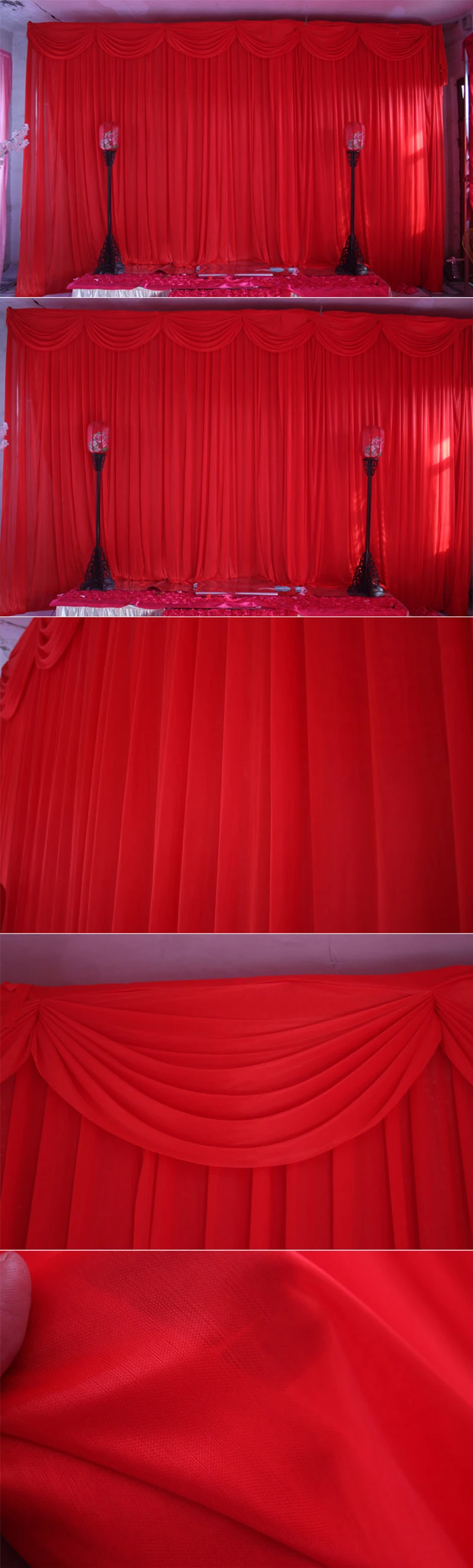 Товар: красный свадебный фон весь комплект Высота: около 3 м (около 10 футов) Ширина: около 6 метров (около 20 футов) (Общая погрешность составляет около 5-6 см) В: как повесить фон? О: у него есть оба кармана для штанги сверху и завязки сзади. Материал: ткань из ледяного шелка (прозрачная) Цвет: красный (может быть на заказ, см. Нашу цветовую таблицу ниже) Весь комплект (красная занавеска + Топ 6 свай) Установка: в верхней части занавеса есть карман для галстуков и штанг. Размер также может быть на заказ, если вы хотите другой размер, пожалуйста, свяжитесь с нами перед покупкой. Спасибо