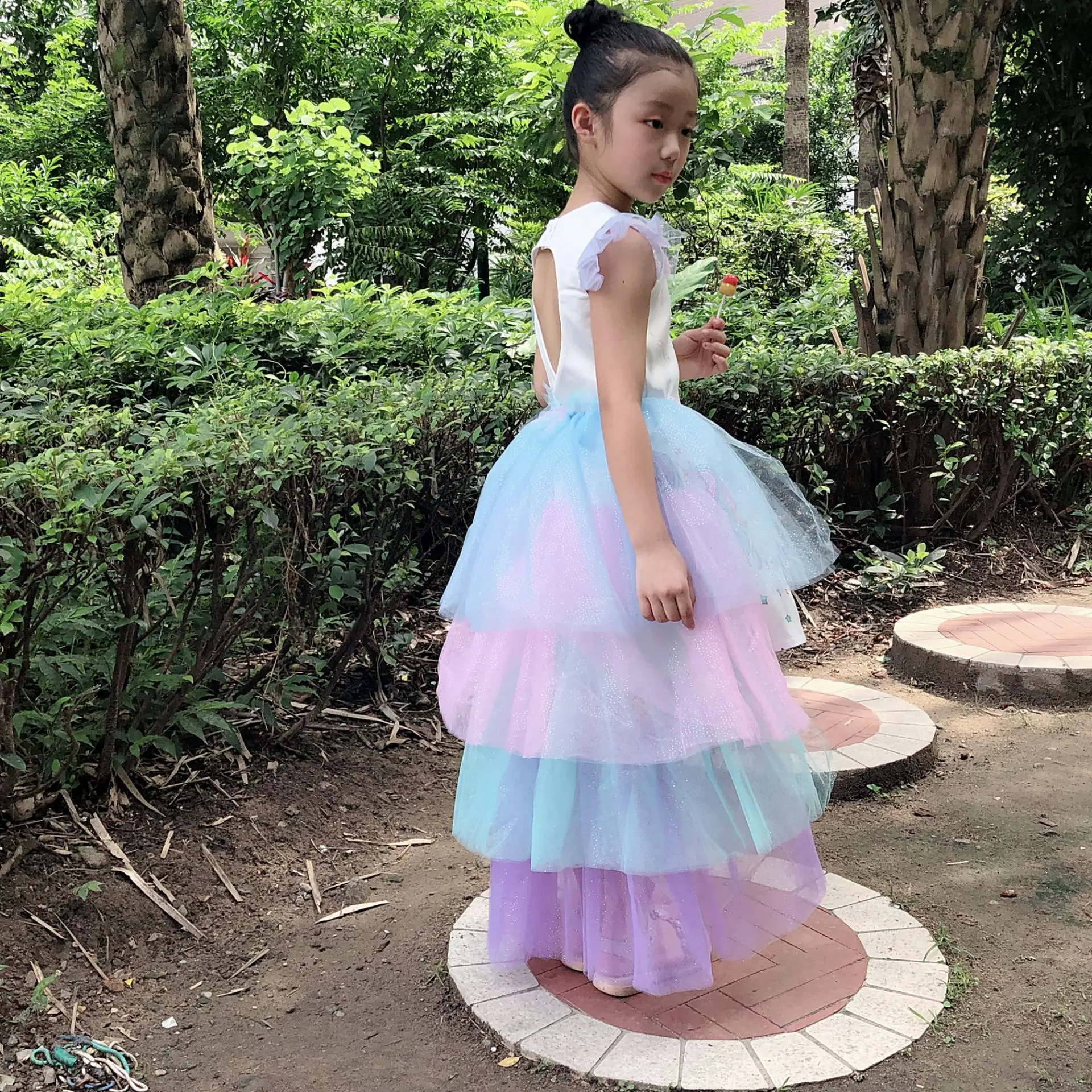 Платье принцессы; Платье с единорогом для девочек; Радужное платье; Сетчатое платье со съемным плащом; Вечерние платья на Рождество; Костюм для девочек; Vestido Unicornio