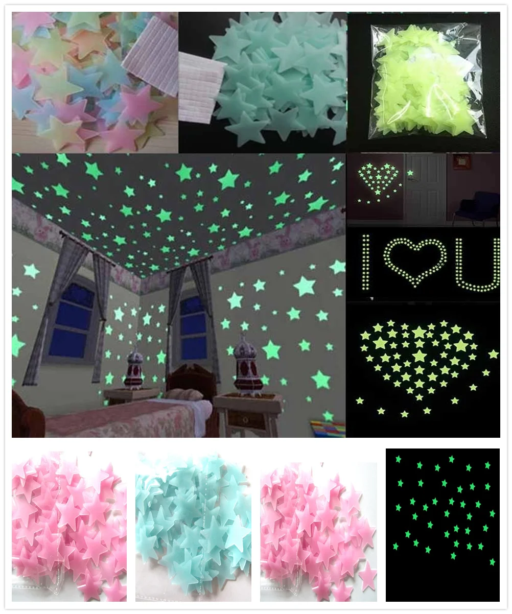 100 шт дети спальня флуоресцентный светится в темноте звезды наклейки на стену