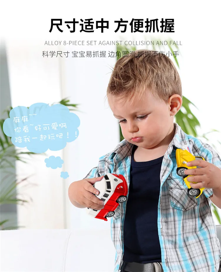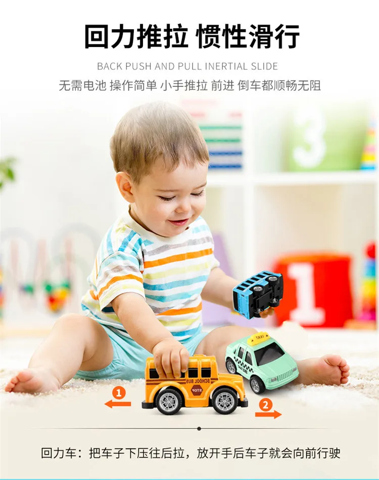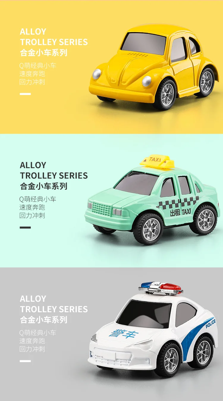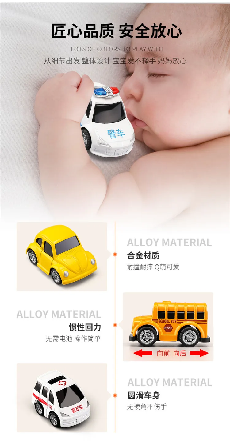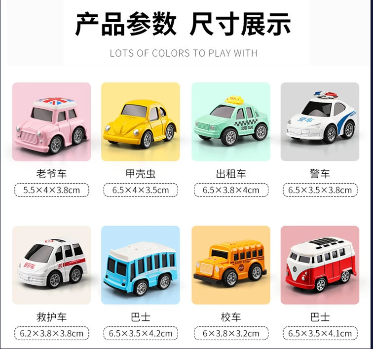 Параметры: 1. Материал: сплав 2. Подходящий возраст: от 3 до 14 лет 3. Характеристики продукта: он устойчив к ударам и падениям. Нажмите на машину назад, чтобы произвести обратную силу. 4. Изготовлен из легированного материала, корпус отличается высокой текстурой и защитой от столкновений. 5. Он отличается изысканным внешним видом, милым и универсальным моделированием и сочетающимся цветом мультфильмов для удовлетворения различных потребностей ребенка.