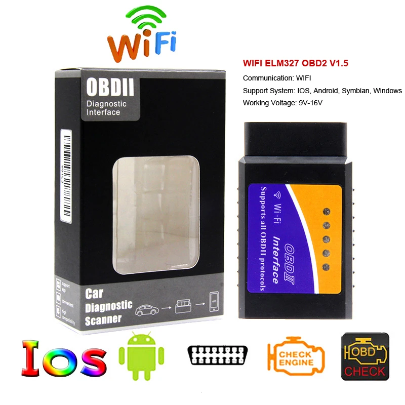 ELM327 V1.5 OBD2 WIFI сканер ELM327 Wi-Fi OBDII elm 327 V 1,5 OBD 2 Автомобильный диагностический инструмент ODB2 считыватель кодов для Android/IOS