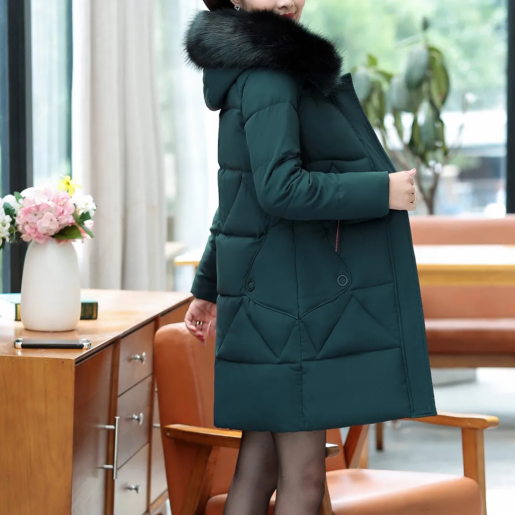 Joycosin 2019 Winter women Down Jacket Fashion women Fluff Hooded coat Slim fit Zipper long sleeve Solid color women long tops