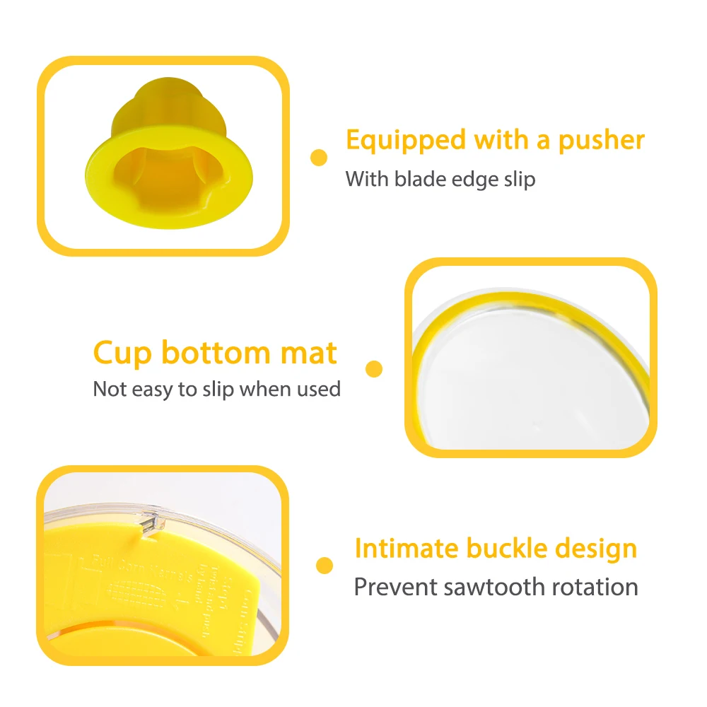 Лезвия из нержавеющей стали этих инструментов для зачистки кукурузы позволяют полосить весь початок кукурузы всего за считанные секунды. Просто протолкните початку кукурузы через инструмент для зачистки скручивающимся движением, чтобы удалить все вкусные ядра. Вы можете сразу же почувствовать разницу, когда используете свежие кукурузные ядра в салатах, Чили, тортильях, запеканках или даже пирожных вместо консервированной кукурузы. Незаменимый кухонный аксессуар для любителей домашней кухни. Отлично подходит для приготовления пищи вместе, в качестве запасного или в качестве подарка для семьи или друзей. Кроме кукурузного пилинга, можно использовать для имбиря, сыра и т. Д. Инструменты для уборки кукурузы легко моются и можно мыть в посудомоечной машине, но рекомендуется ручная стирка.