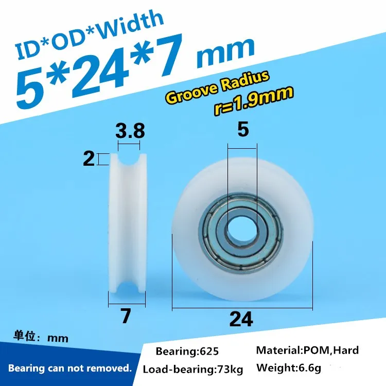 [Размер ролика]:ID = 5 мм, OD = 24 мм, ширина = 7 мм