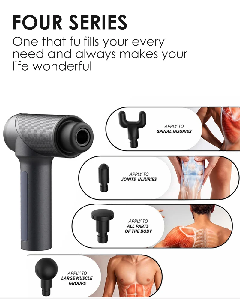 1. Если вам нужен действительно глубокий массаж, это продукт для вас. Если вы работаете в строительстве, сестринском, спорте, Кроссфите и т. Д. Или занимаетесь любым типом подъема или физически напряженной работой, вам это нужно! Если вы усердно работаете, у вас, вероятно, есть боль в спине и часто регулярный массаж, и большинство ручных массажеров достаточно глубоко, тогда мы рекомендуем этот массажный пистолет для вас. 2. Тихий. Тихий шепот по сравнению с другими массажными пистолетами. 3. Есть 4-6 массажных головок. Массажер может активировать мышцы, стимулировать кровоток, значительно уменьшить время восстановления мышц, облегчить боль. 4. Сменная Массажная головка позволяет вашему телу наслаждаться многоугольным массажем.