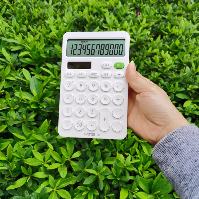 12-разрядный калькулятор Рабочий стол большие круглые пуговицы финансовых Бизнес Бухгалтерия инструмент, в розовом, синем и черном цвете большие пуговицы аккумуляторная батарея и солнечной энергии