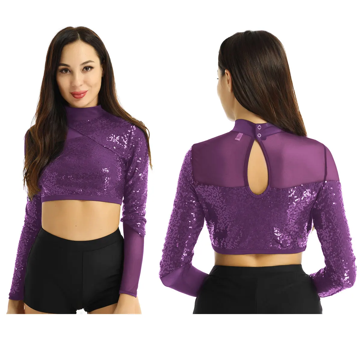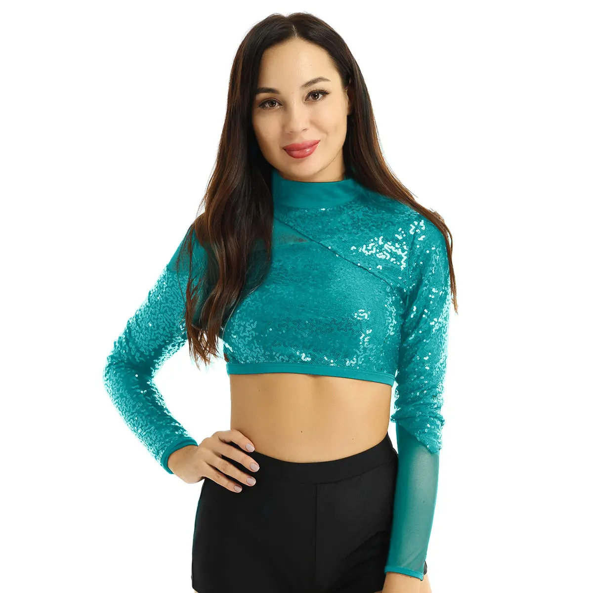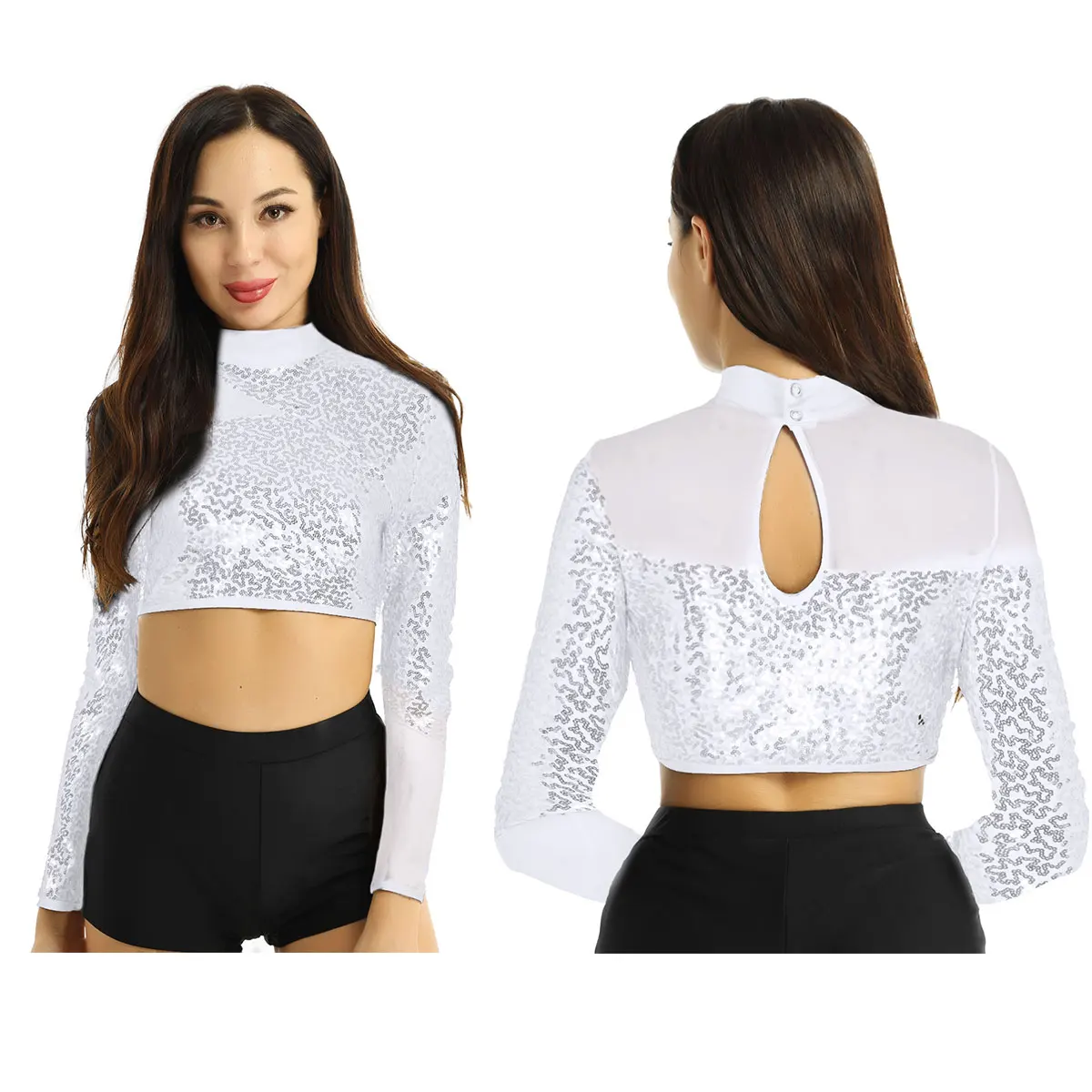 Женский элегантный сверкающий Блестящий короткий топ с блестками, Одежда для танцев, надежная застежка