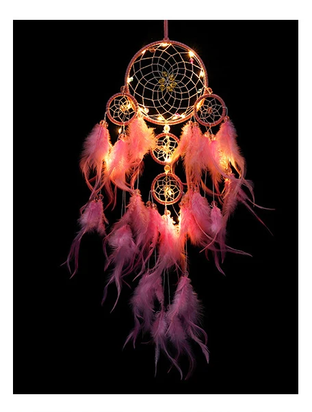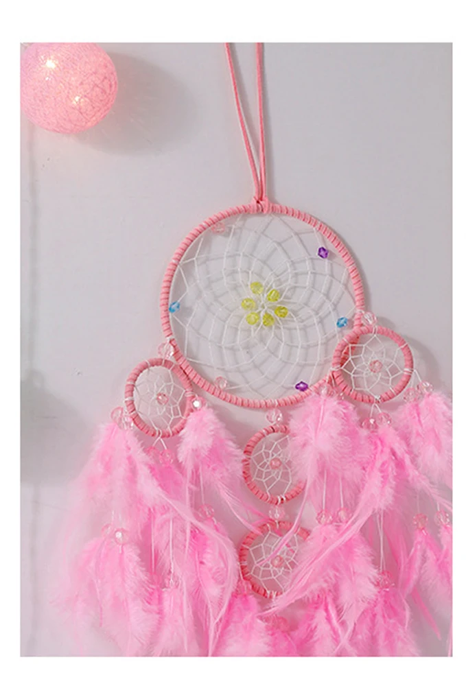 Main material: Feather + Iron ring + Beads Workmanship: Handmade Feather color: Pink Package: Without light: 1* Dreamcatcher With light: 1* Dreamcatcher +1* light line TIP: 1.There may be errors due to shooting equipment, shooting angle, light, display, etc. Please refer to the actual product received! 2.Purely hand-made, the product may be different from the picture, it is normal.