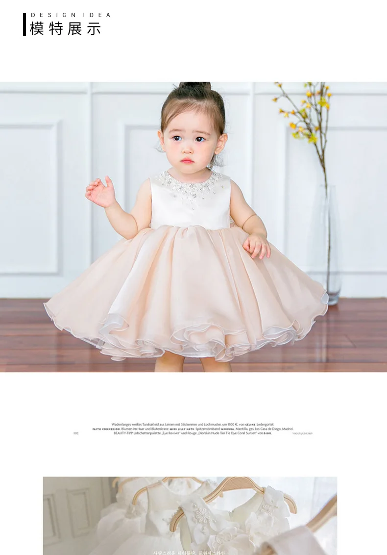 Cute Girl Flower Dress Wedding Pink Tulle Baby Girl Christening Gown For Party 1 Year Baby Girl Birthday Baptism Dress White
