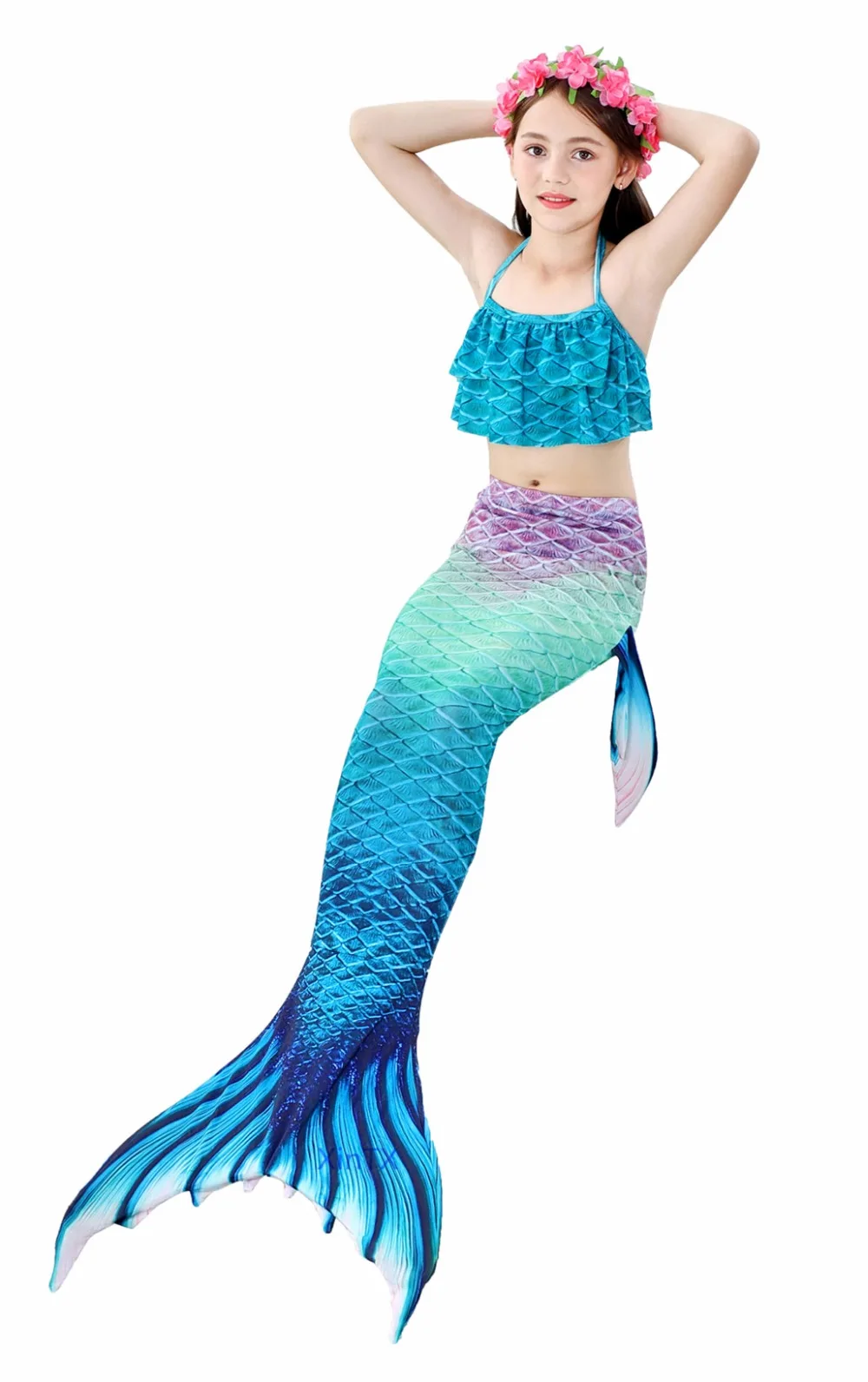 1 * хвост русалки + 1 * бюстгальтер + 1 * шорты + 1 * монофин + 1 * головной убор + 1 * очки
