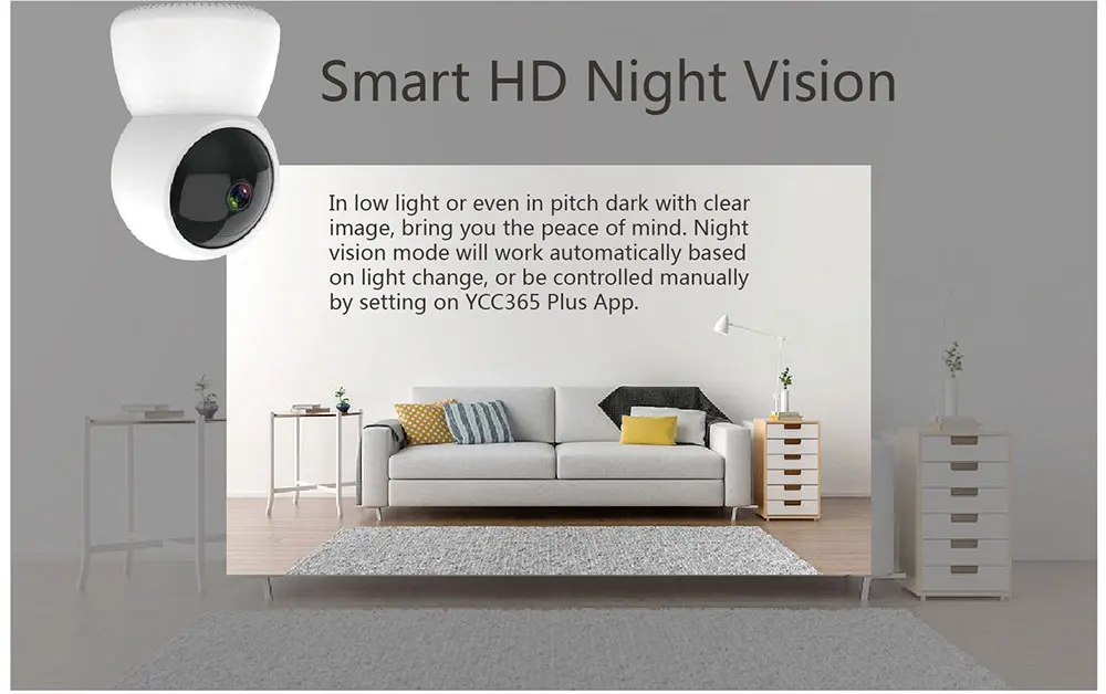 При слабом освещении или в темноте, с четкими изображениями, вы можете легко отдыхать. Режим ночного видения будет работать автоматически в зависимости от изменения света или ручного управления, установив на мобильном телефоне приложение.