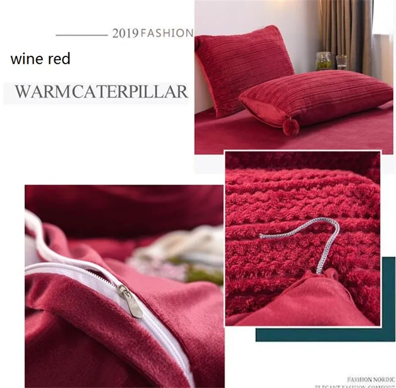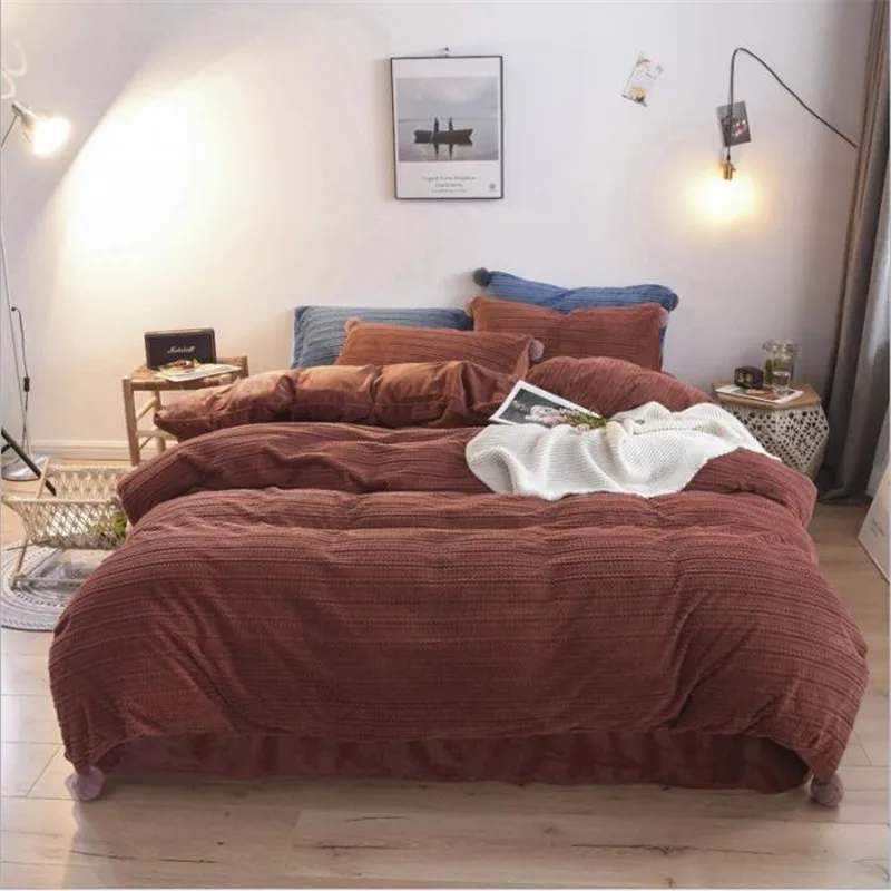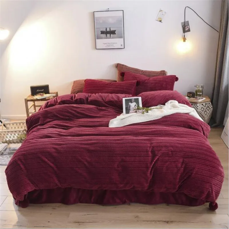 AB вельветовые комплекты постельного белья зимние теплые флисовые простыни пододеяльник простынь King Size 4 шт чистый цвет 2019 винно-Красное озеро синее