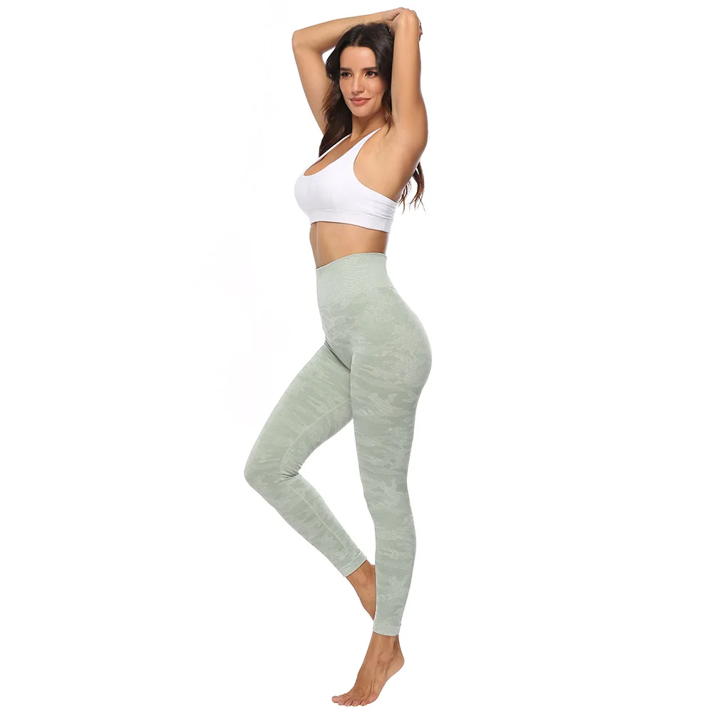 Бесшовные женские штаны для бега, йоги, с высокой талией, с вышивкой, трикотажные спортивные брюки Camouflag, женские спортивные Леггинсы для бега, фитнеса, тренажерного зала