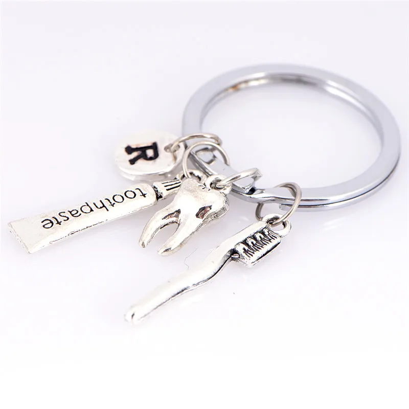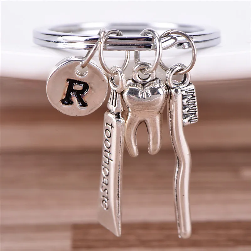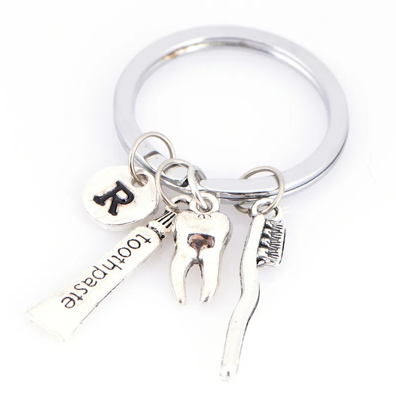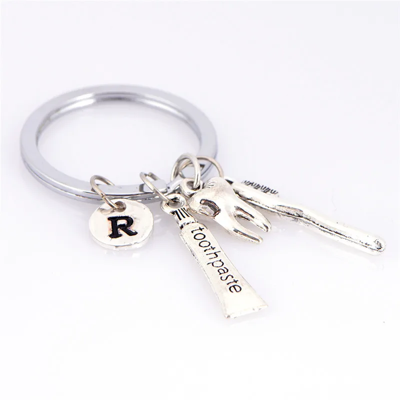 В этом брелке есть зубная паста, зубная щетка, начальная и Зубная.