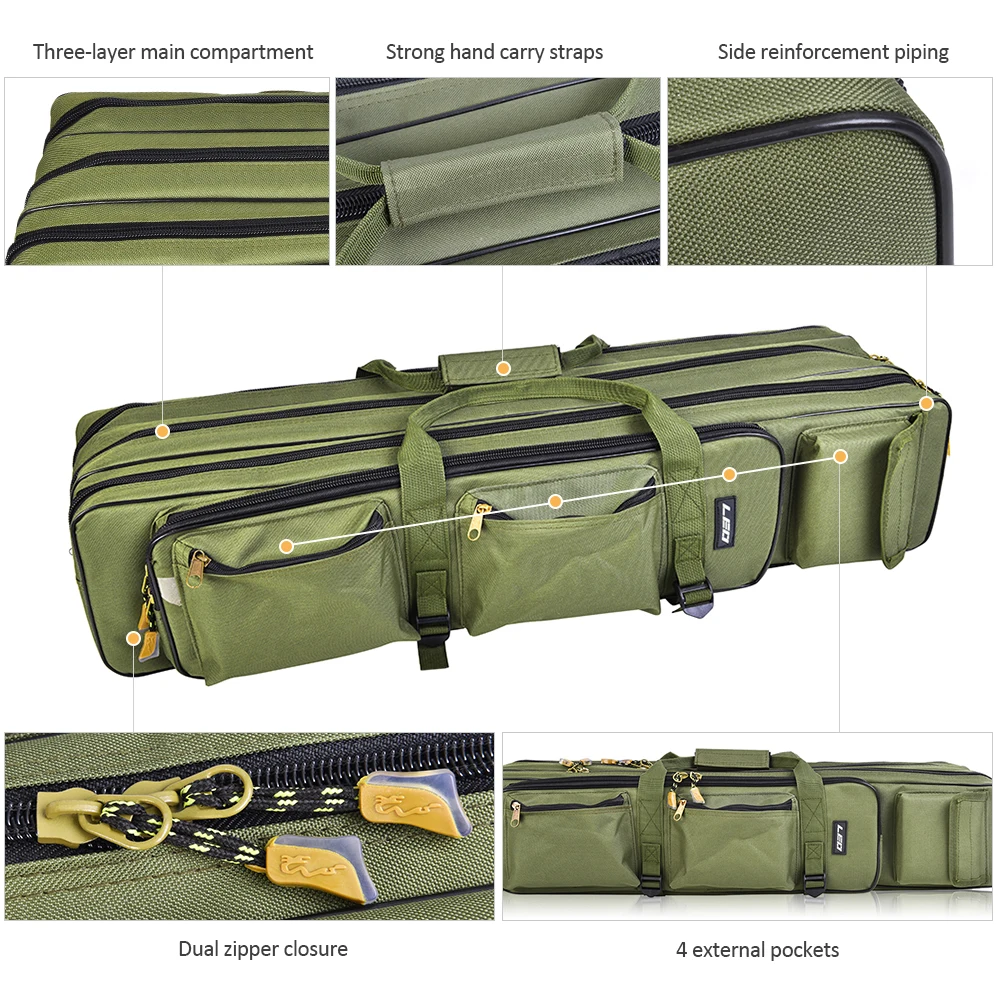 3-слойный дизайн, вместительный, чтобы держать ваши рыболовные снасти, такие как удочка, ящик для рыболовных принадлежностей.