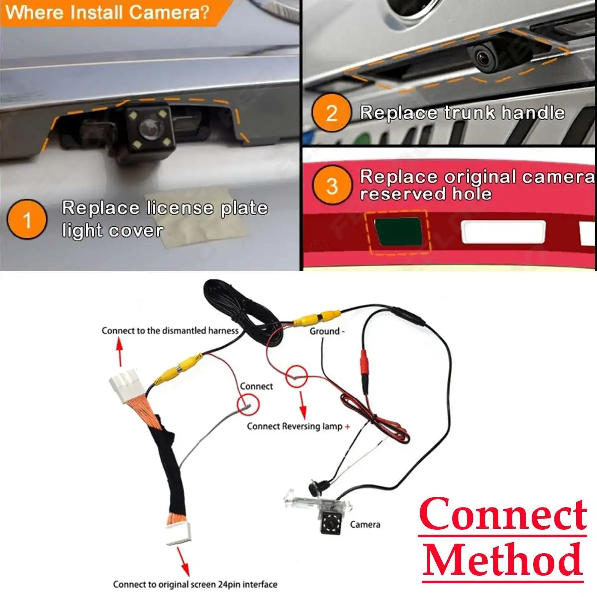 Уважаемый клиент, пожалуйста, перед размещением заказа проверьте фотографии размеров камеры, если вы не уверены в этом, поэтому, пожалуйста, проверьте размер камеры с вашим размером лампы номерного знака и желтым разъемом RCA, чтобы избежать ошибки. (Или, пожалуйста, оставьте сообщение)