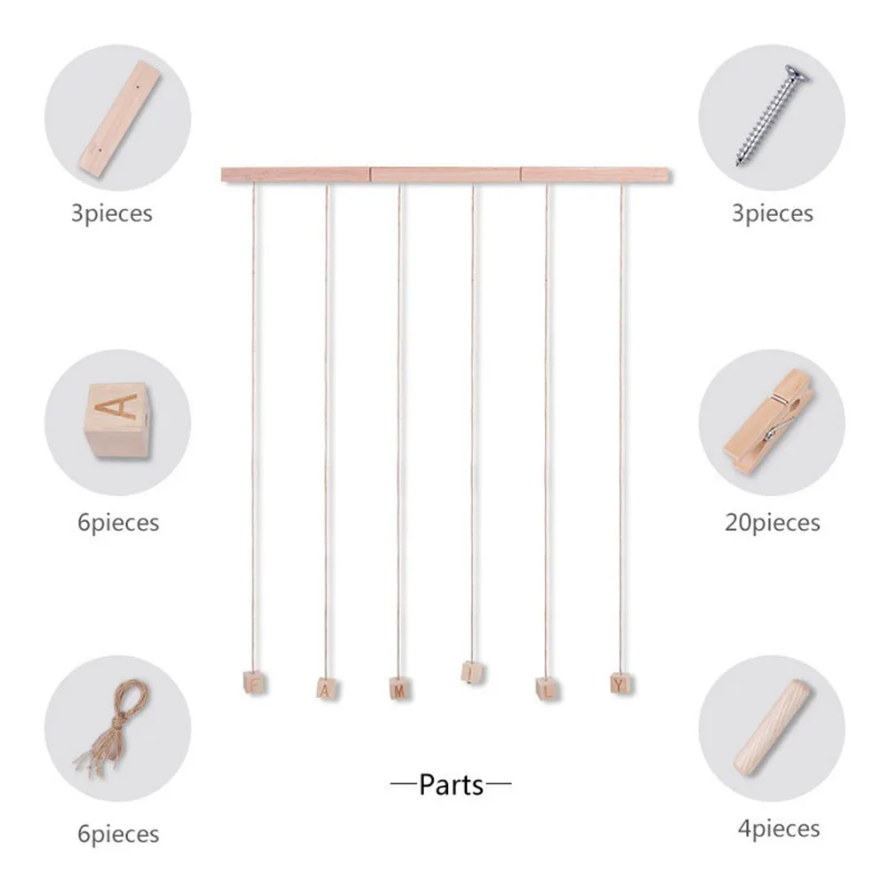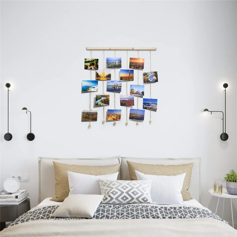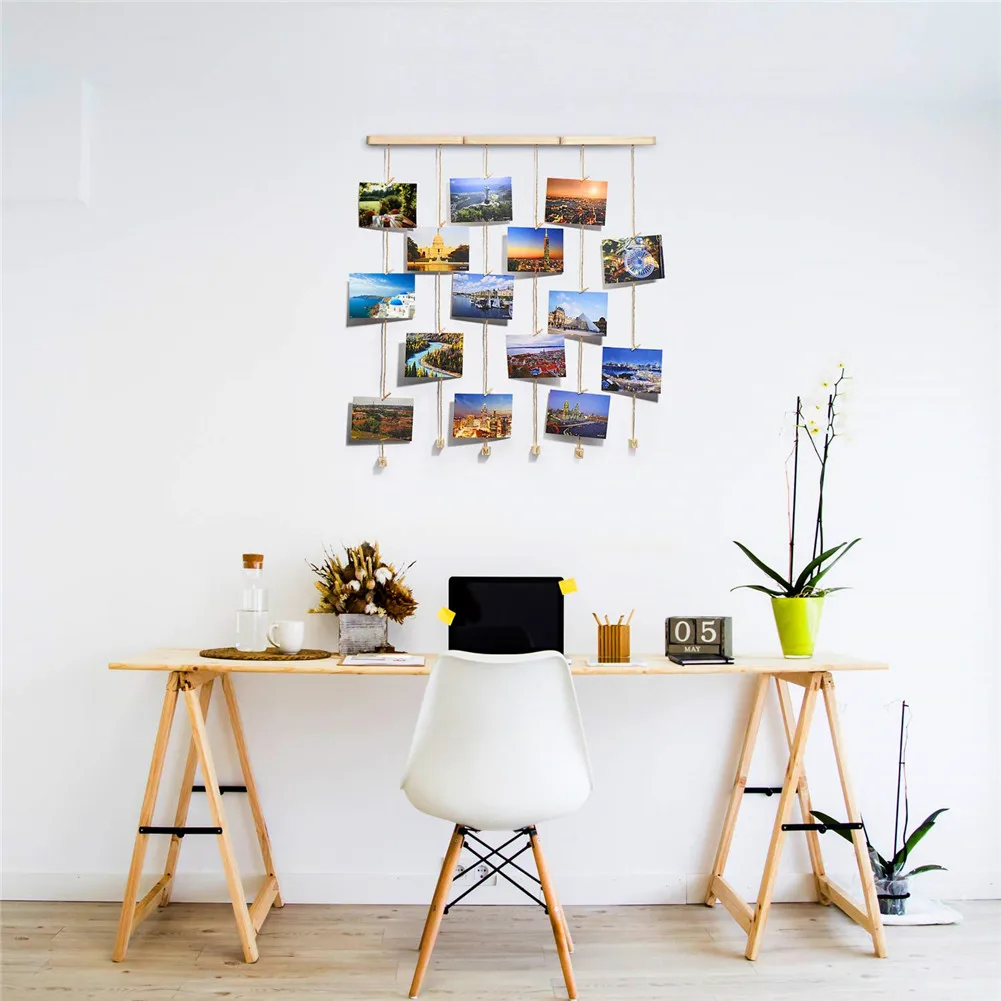 (3)Multic photo hanging: настенный органайзер для фотографий поставляется с 20 деревянными клипсами, вы можете придать вашему индивидуальному дизайну стены макияж в любое время, просто удаляя или добавляя фотографии. Вы также можете поделиться своими картинками смешанных размеров, открытками, пейзажами, любой комбинацией, которую вы хотите, кроме висячих фотографий.