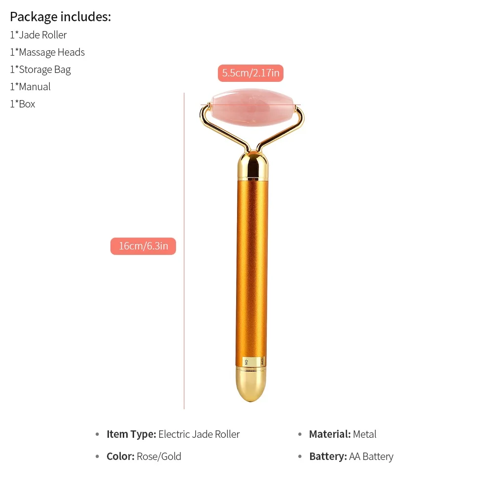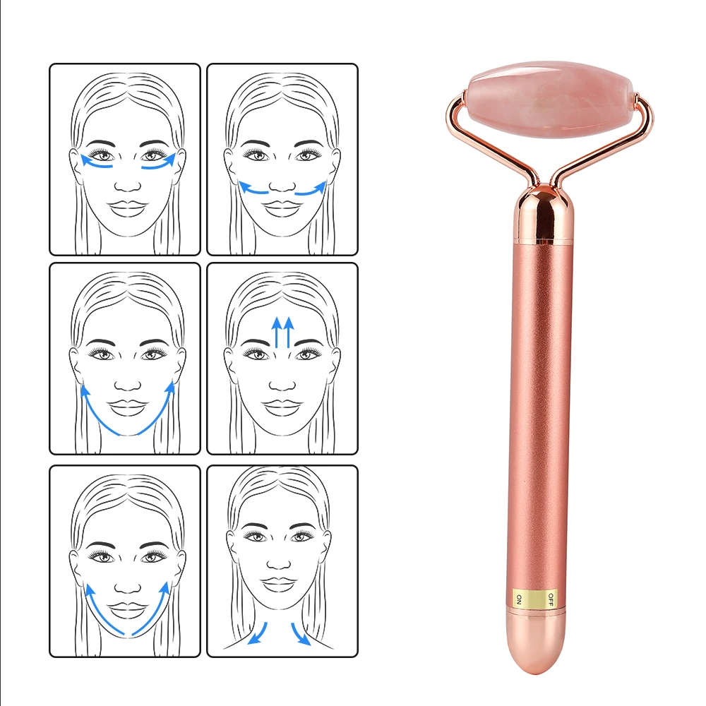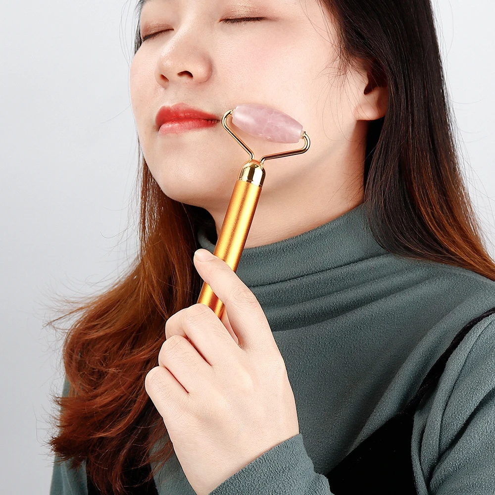 Электрический розовый КВАРЦЕВЫЙ роликовый массажер для похудения и лифтинга, натуральный Нефритовый камень, вибрирующий ролик для лица, инструмент для ухода за кожей