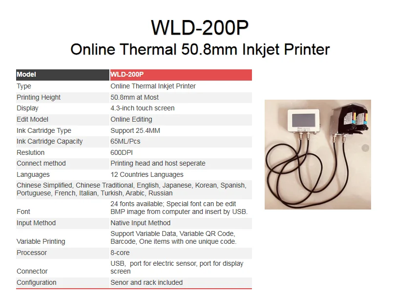 1, Встроенный интеллектуальный вход, более эффективный 2600 точек/дюйм, сенсорный экран высокой четкости, точное касание, печать высокой четкости, лучший опыт работы 3. Уникальный дизайн корпуса чернильного картриджа, поход за частыми вставками и удалением картриджей с чернилами, эффективная защита от блокировки. 4, маленький и портативный корпус, встроенный энкодер, отказался от раздувания. 5, 8-ядерный Процессор, высокую производительность, система работает более плавно. 6. Полная зарядка аккумулятора может длиться более 10 часов. 7, графика, импортированная с U диска 8. Поддержка портативной печати или онлайн-печати, используемой вместе с ленточным транспортером. 9. Поддержка 12 языков.