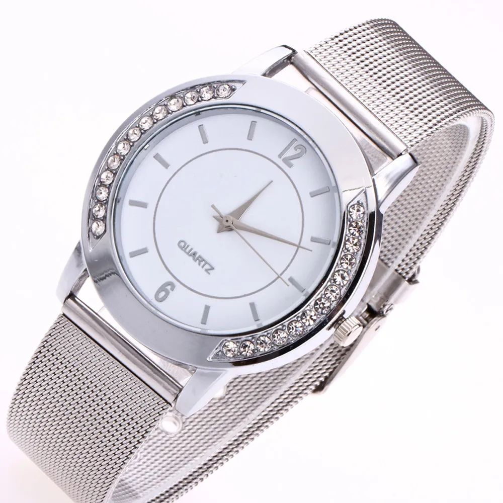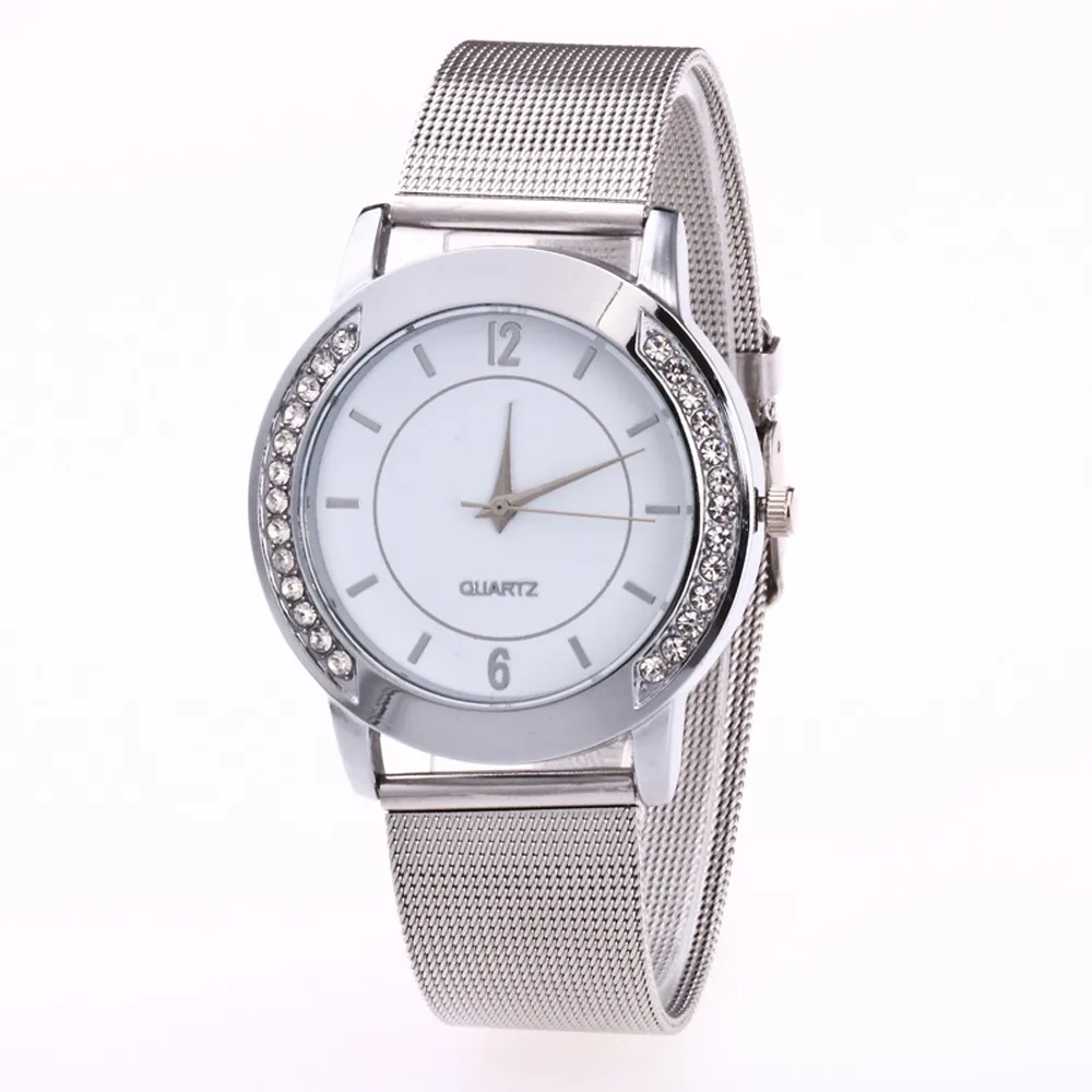 Модные женские Аналоговые кварцевые наручные часы, браслет из нержавеющей стали с золотым кристаллом