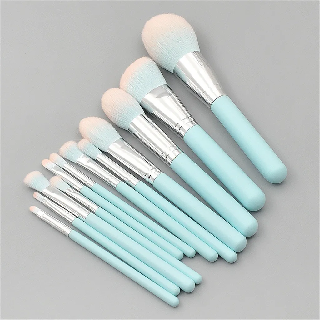 12 шт. светло-голубой с деревянной ручкой, набор кистей для пудры и макияжа