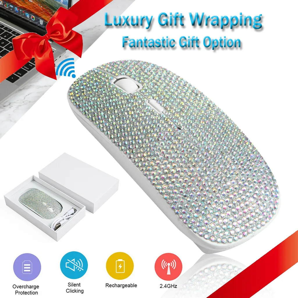 Ослепительная перезаряжаемая беспроводная мышь 2,4G, покрытая стразами, подарок