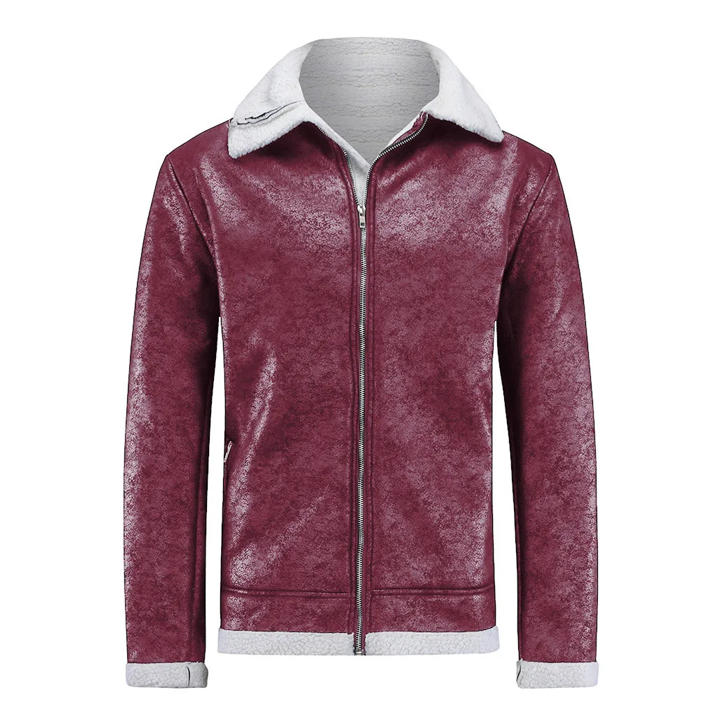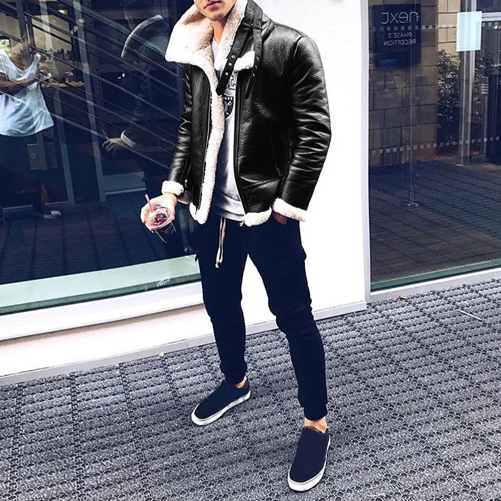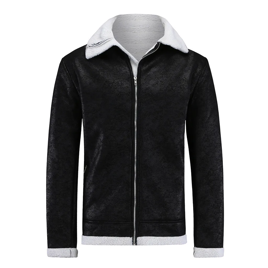 Модная мужская зимняя теплая верхняя одежда из овчины на молнии с лацканами