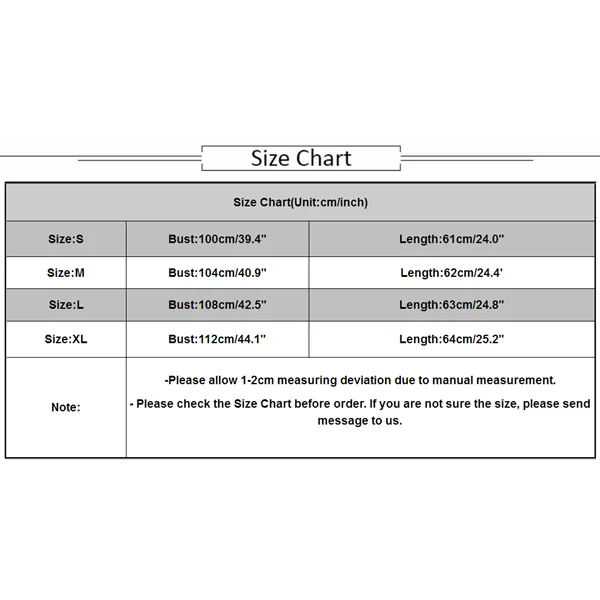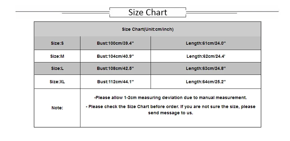 -Пожалуйста, проверьтеТаблица размеровПеред заказом. Если вы не уверены в размере, пожалуйста, отправьте нам сообщение.