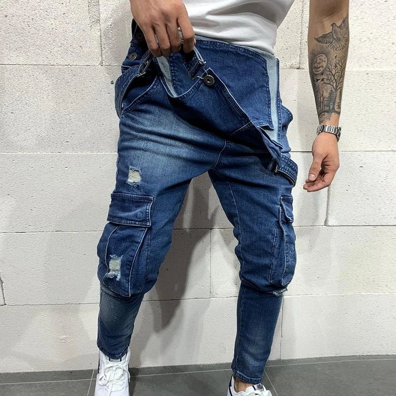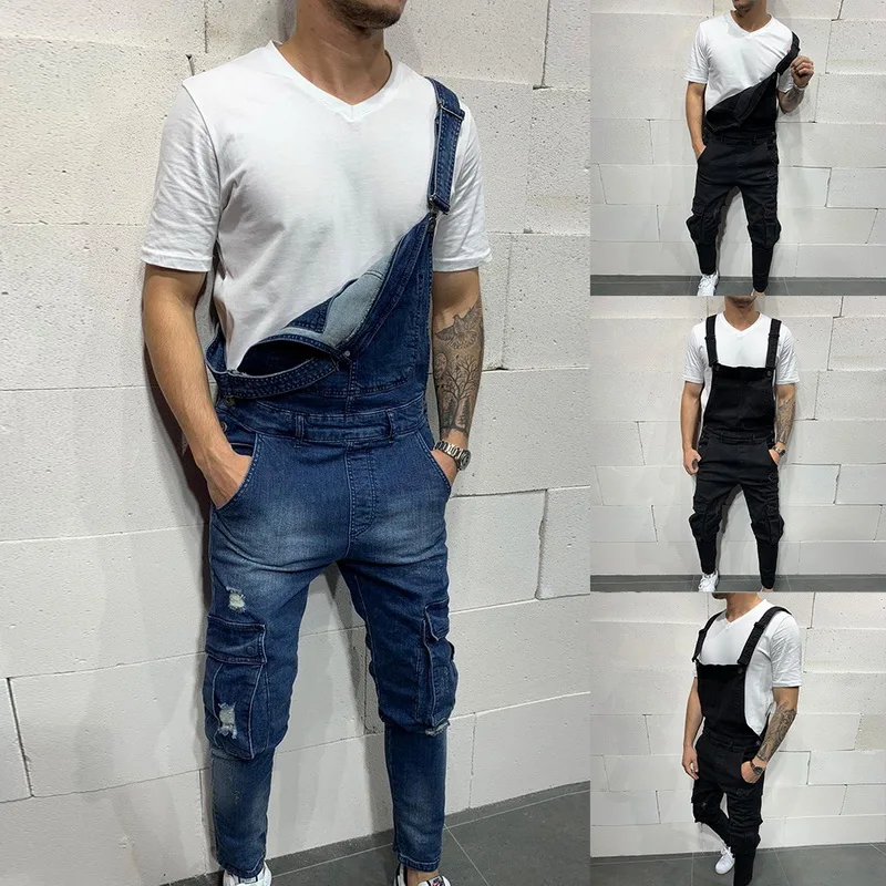 Мужские рваные джинсы, комбинезоны, Мужская одежда, джинсовый комбинезон, комбинезоны свободного размера плюс, цельные мужские Модные джинсы