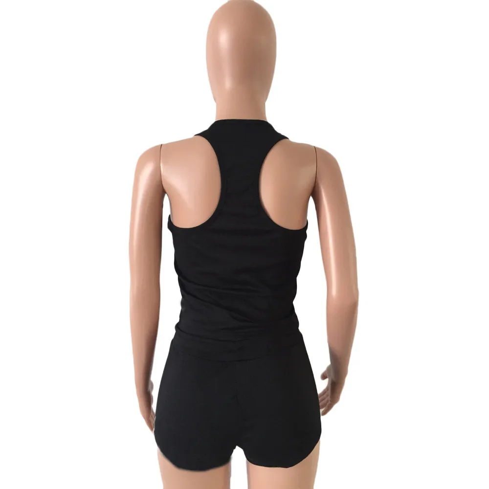 Женский комплект из 2 предметов без рукавов, повседневные короткие штаны, повседневная спортивная одежда
