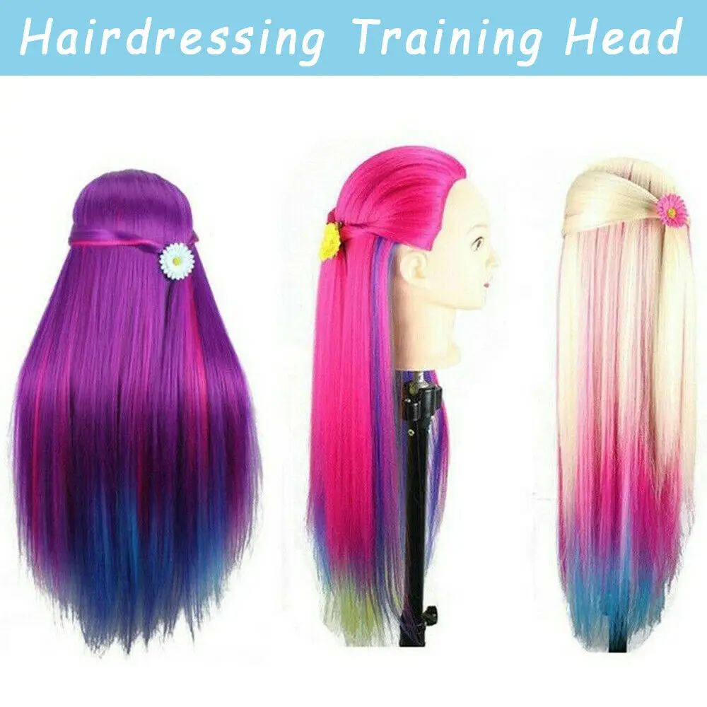 26-29 "Красочный Длинный манекен головы Парикмахерская обучение куклы и зажим Характеристики: