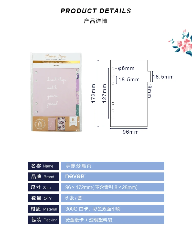 Название: никогда не розовые серии разделителей для Filofax спиральная тетрадь A6 аксессуары для планировщика дневник Ретро Закладка Канцтовары