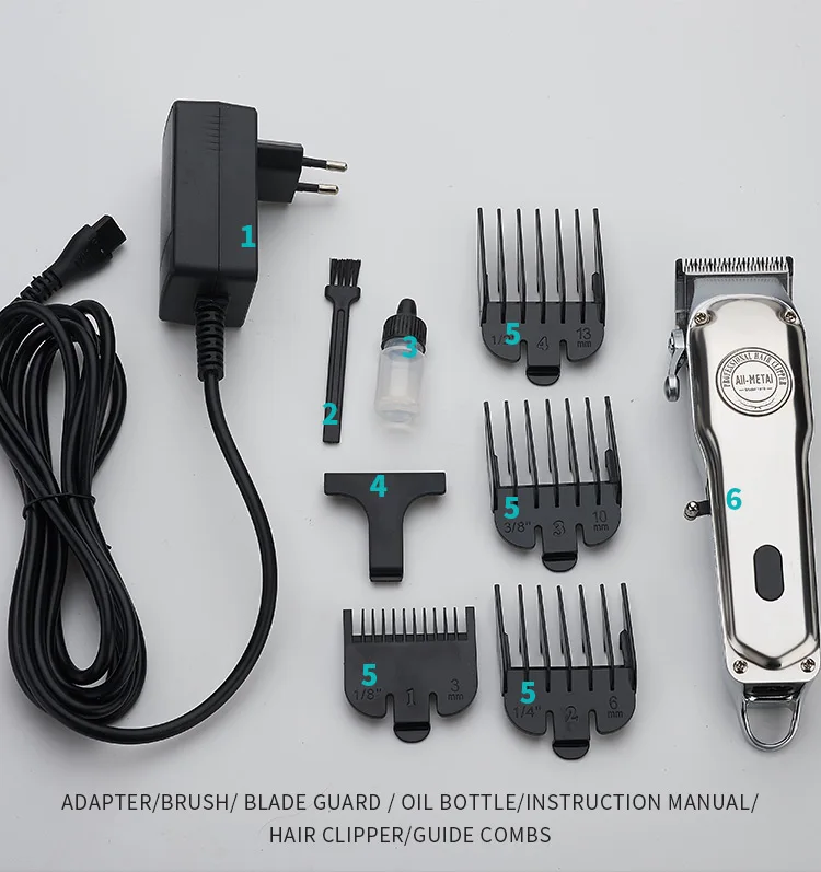 Описание продукта: Цельнометаллический фюзеляж, вес нетто машины 433,9 г Верхняя крышка ручка изготовлена из 304 нержавеющая сталь Нижняя крышка ручки высокого качества авиационного алюминия Конический рычаг изготовлен из цинкового сплава Лезвие из нержавеющей стали 440, ширина лезвия 45 мм Проводное или беспроводное использование Высокая мощность двигателя 6400-6900 об/мин С коническим отверстием производства рычаг регулировки от 0,5 до 1,0 мм Профессиональный парикмахерский инструмент или для домашнего использования СВЕТОДИОДНЫЙ цифровой дисплей Характеристики продукта: 2,5 часов быстрое и безопасное зарядное устройство время зарядки Время работы 75 минут Литий-ионный аккумулятор 2000 мА Зарядное устройство для розеток европейского стандарта дизайн 4 шт. Руководство гребень 3/6/10/13 мм Не содержит масляных бутылок Подходит для парикмахеров, мужчин, женщин, пожилых людей, малышей, детей 100% настоящая картинка, 100% Новинка, 100% оригинал Продавец хорошо упаковывается, поэтому, пожалуйста, не беспокойтесь о повреждении Номер отслеживания отслеживается во время транспортировки, быстрая доставка Гарантия 5 лет