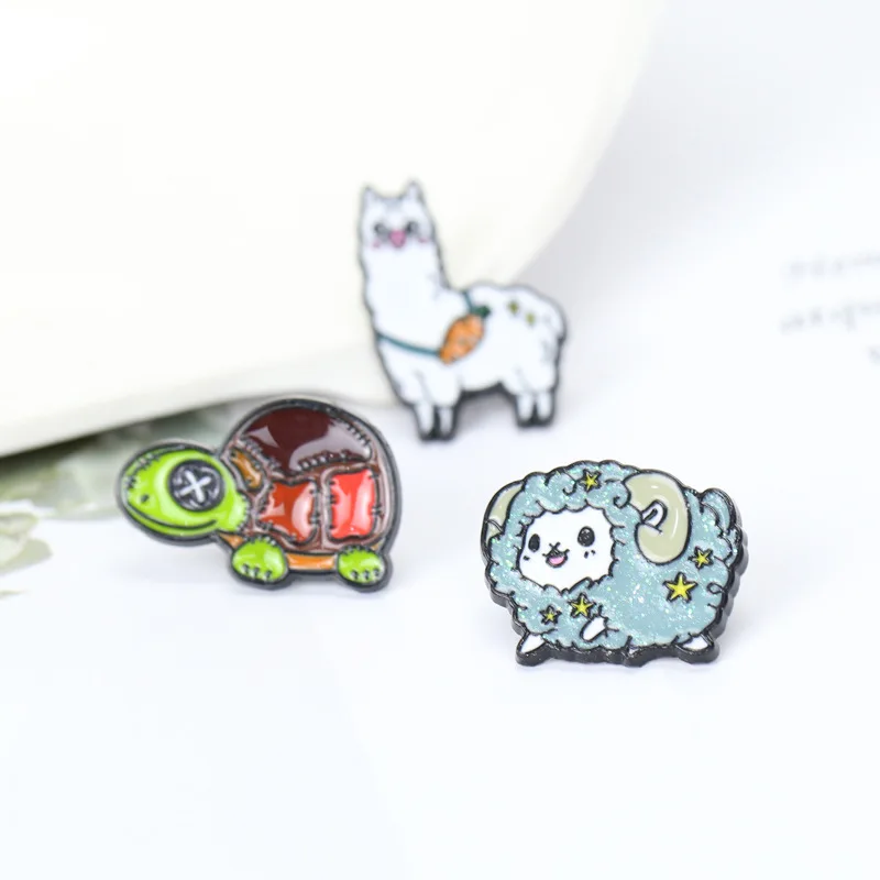 Новый Альпака Лев брошь в виде черепахи и крикет булавка Милый Мультфильм Альпака Лев черепаха ребенок значок для рюкзака брошь