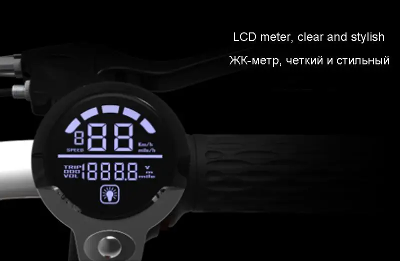 Мощность двигателя:400 ВтБесщеточный двигатель Емкость аккумулятора: 8AH/10AH/15AH литиевая батарея Максимальный диапазон:8ач: около 30-40 км 10ач: около 45-50 км 15AH: около 65-70 км (Зависит от веса, скорости, состояния дороги и погоды) Максимальная скорость: около20 км/ч Напряжение: 48 в Время зарядки: около 4-9 ч Размер расширения: 107*107*67 см Размер складывания: 107*67*67 см Угол скалолазания: около 25-30 ° Максимальная нагрузка: около 140 кг Посылка включает в себя: электрический скутер, зарядное устройство, пульт дистанционного управления Характеристики: передняя ударная подвеска и задняя двойная ударная подвеска, умный ЖК-дисплей, Светодиодный фонарь, корзина для домашних животных, usb-порт для зарядки телефона, Противоугонная сигнализация.